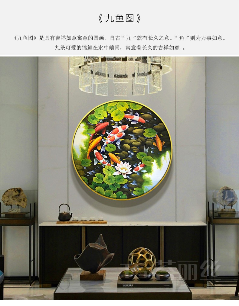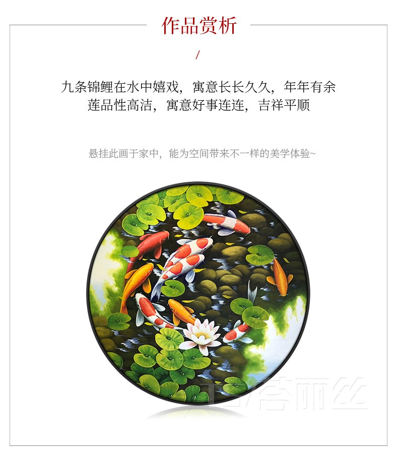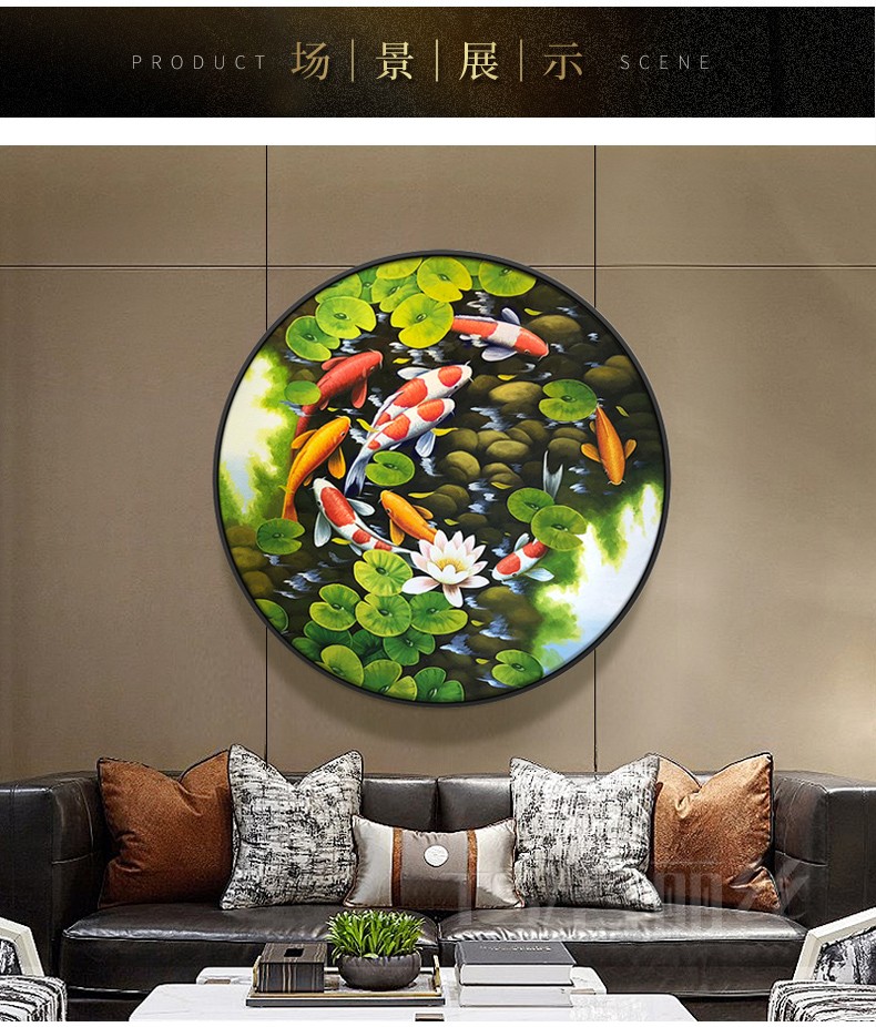 九魚圖鉆石畫臥室新款2019客廳歐式圓形點鉆十字繡5d鉆石繡戲荷圖1入