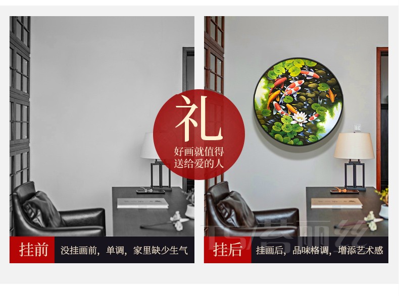 KT613320mm厚板白色框中號 直徑24CM美式客廳沙發背景墻裝飾畫歐式臥室壁畫掛畫餐廳玄關墻畫現代簡約