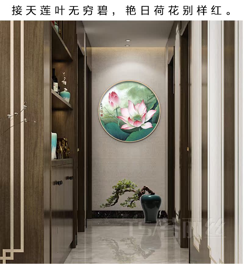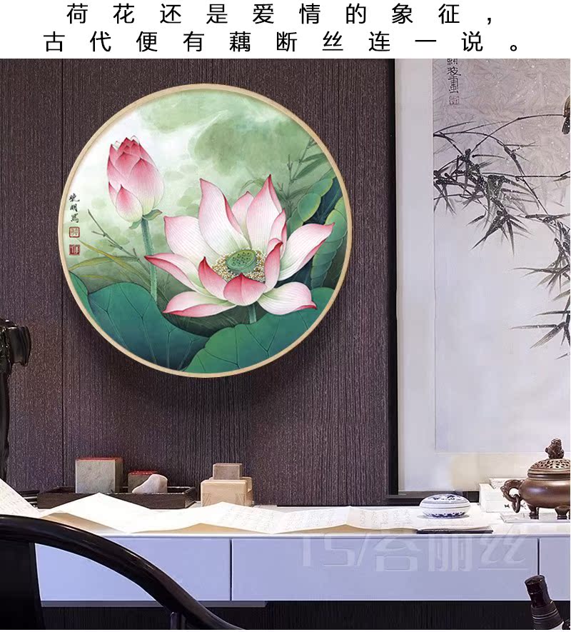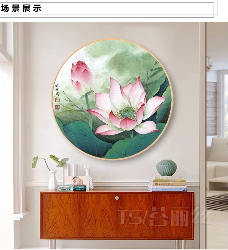 圓形十字繡自己裝裱框2019新款客廳線繡荷花簡單實木圓框餐廳掛畫1入