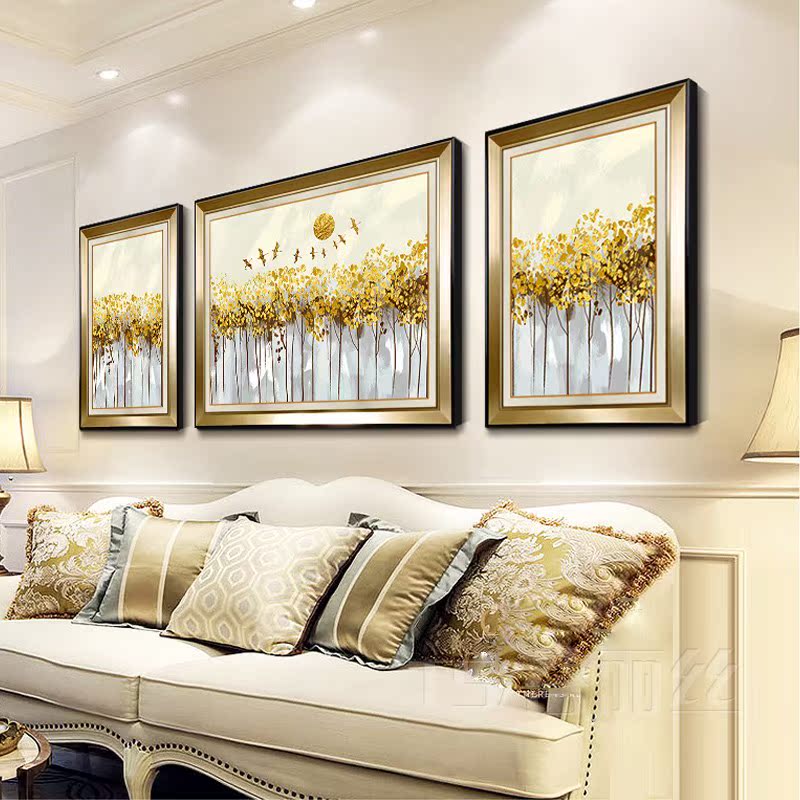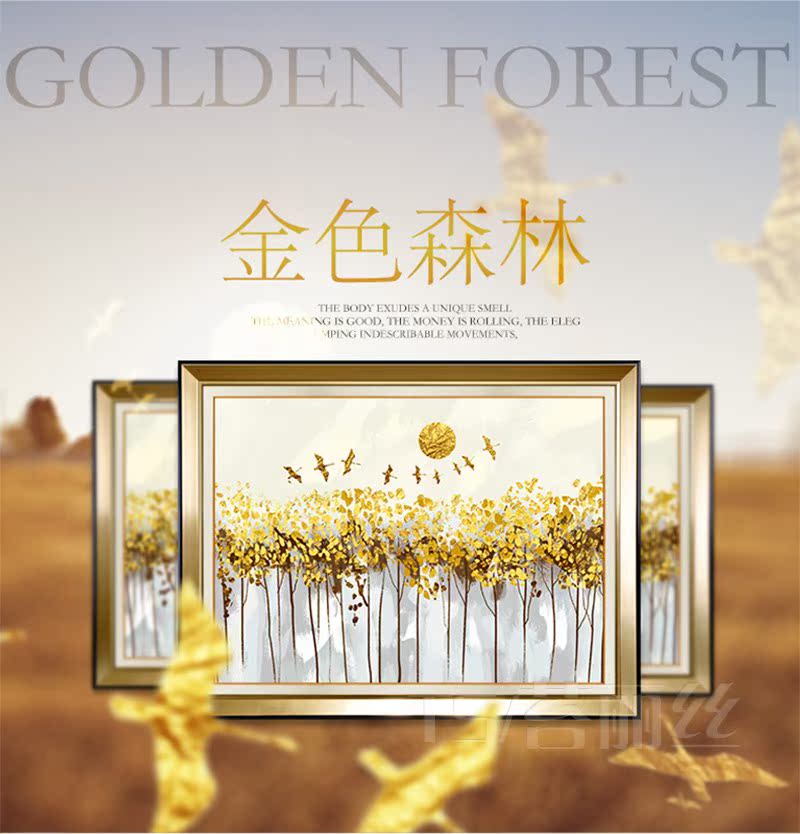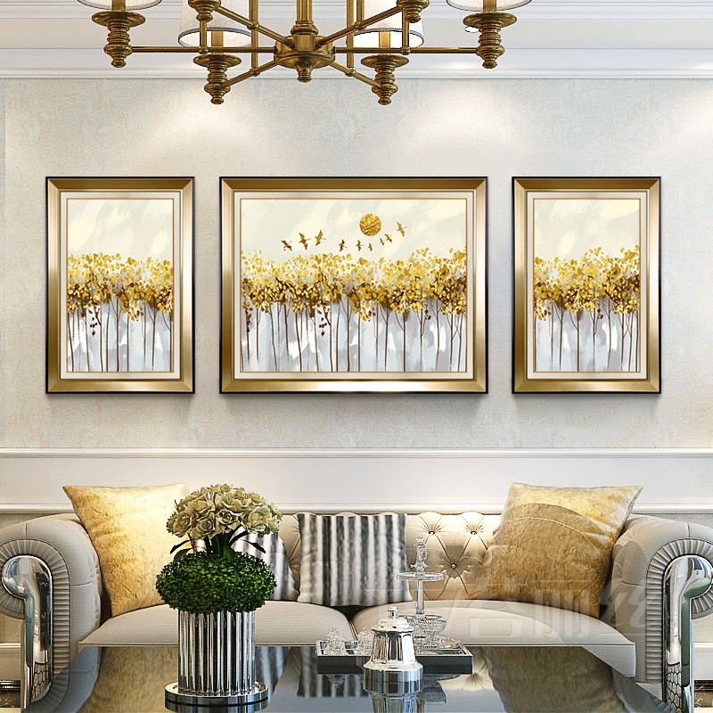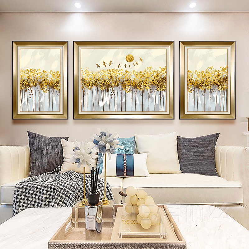 歐式客廳鉆石畫滿鉆三連畫金色森林發財樹十字繡鉆石繡5d圓磚石畫1入