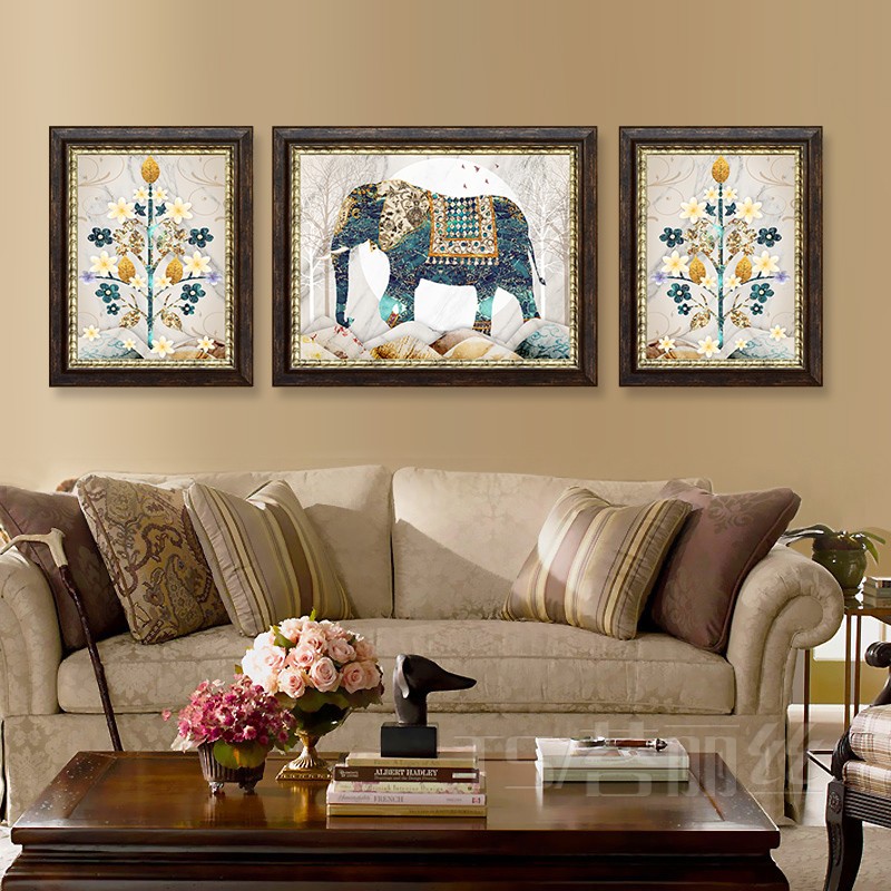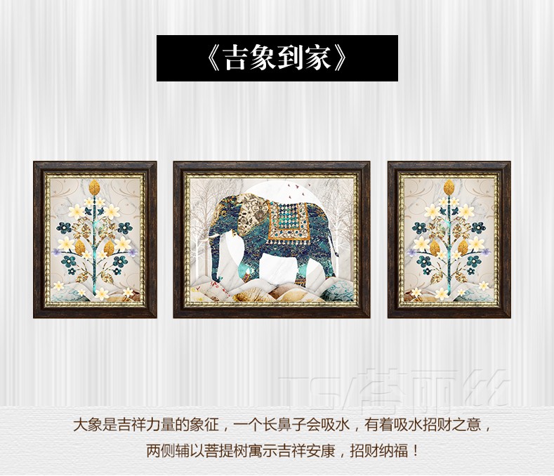 歐式鉆石畫滿鉆客廳貼鉆十字繡吉祥大象三聯畫鉆石繡發財樹點鉆畫1入
