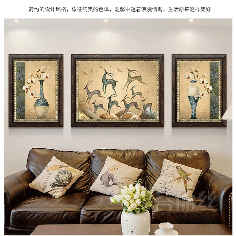 大氣美式客廳三聯鉆石畫復古歐式花瓶點鉆十字繡磚石畫5d圓鉆石繡1入