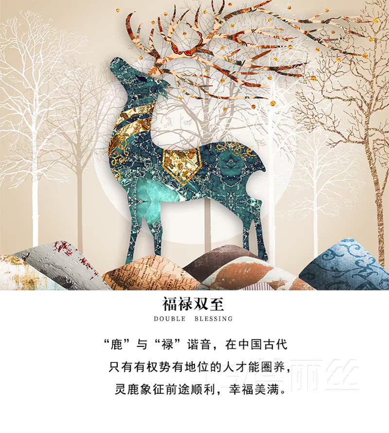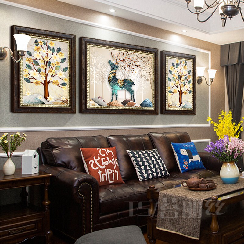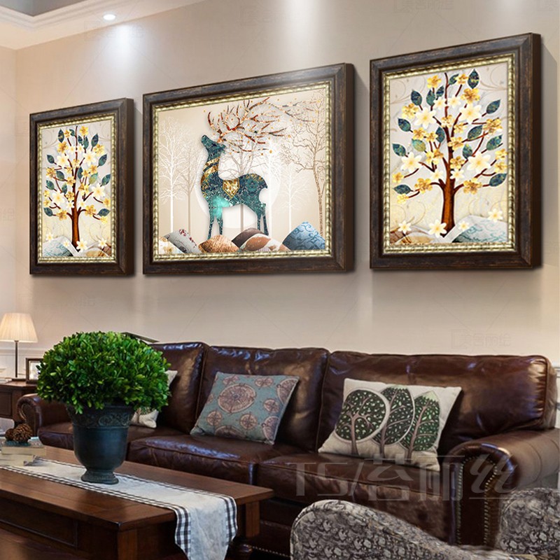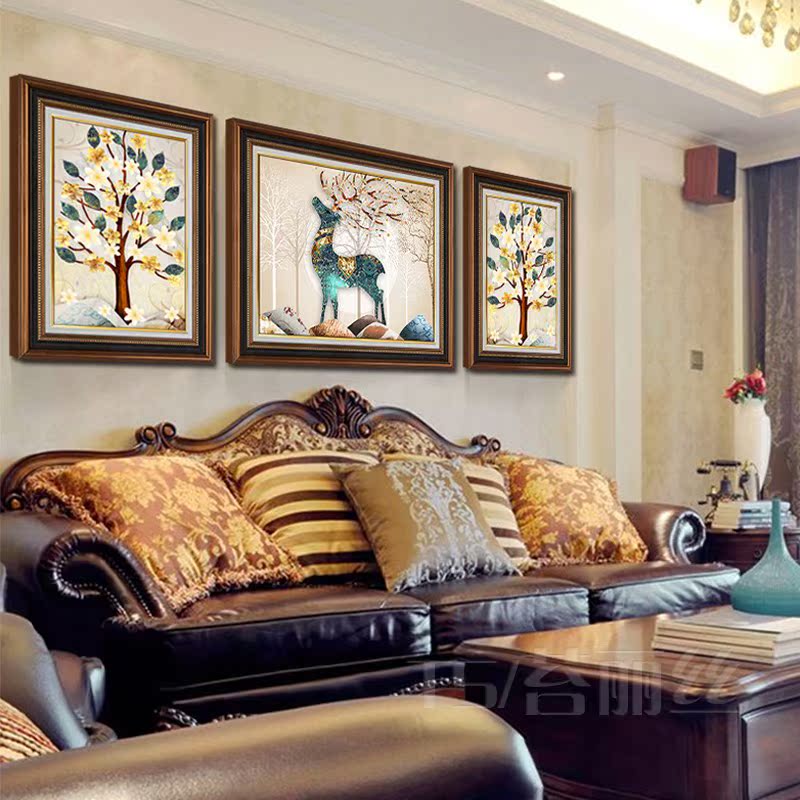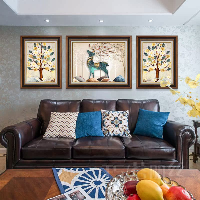 美式大氣沙發背景墻鉆石畫歐式客廳大幅十字繡點鉆畫發財鹿三聯畫1入
