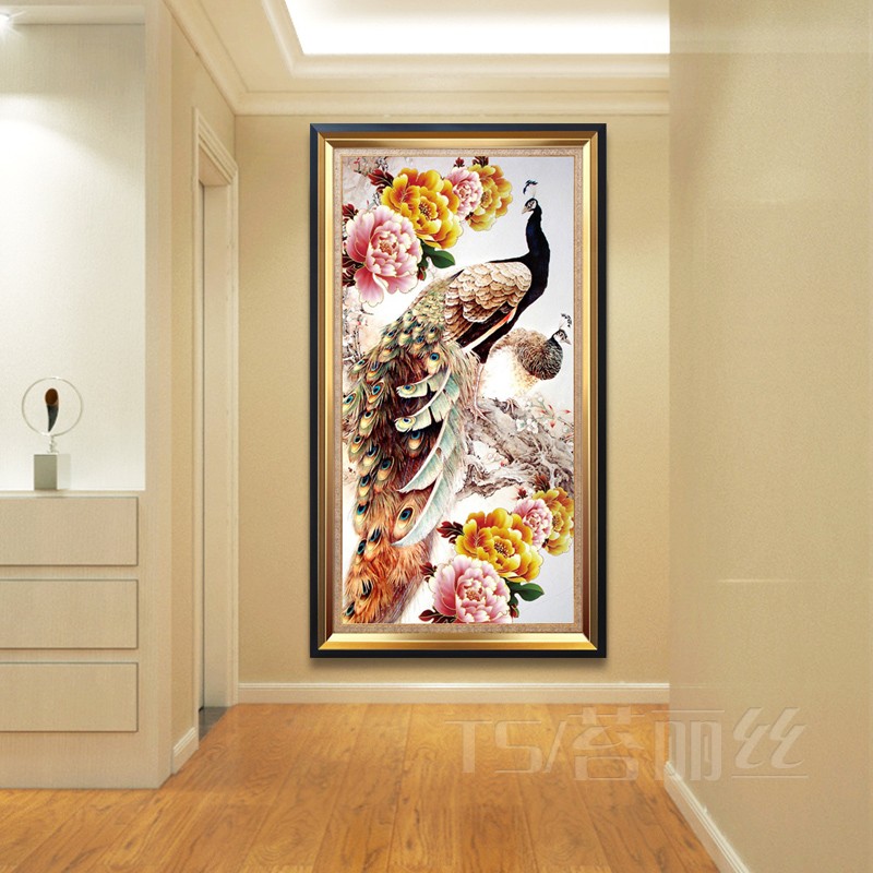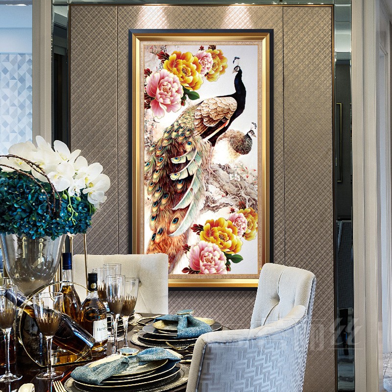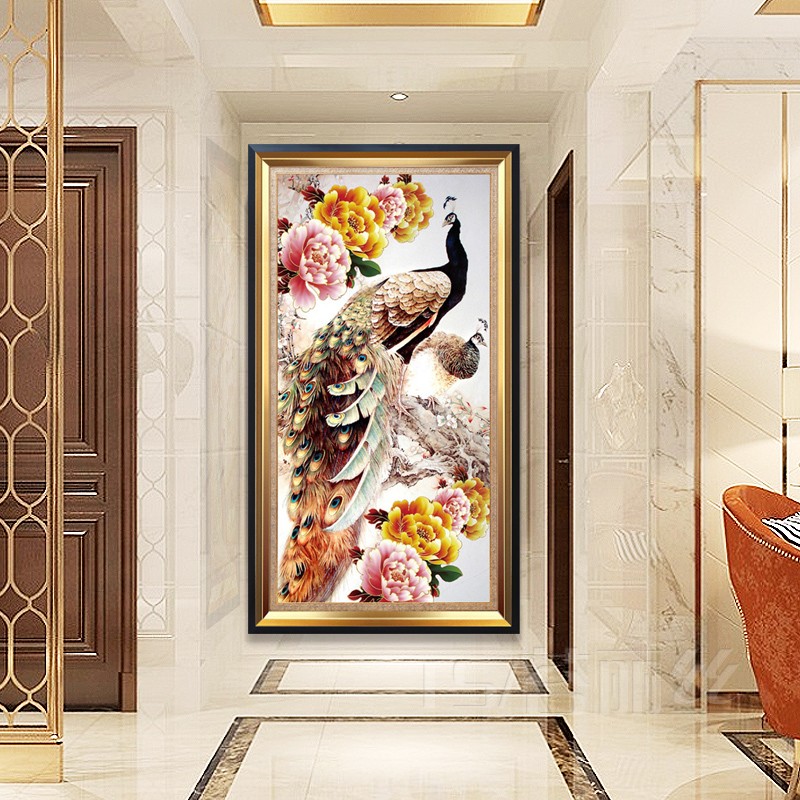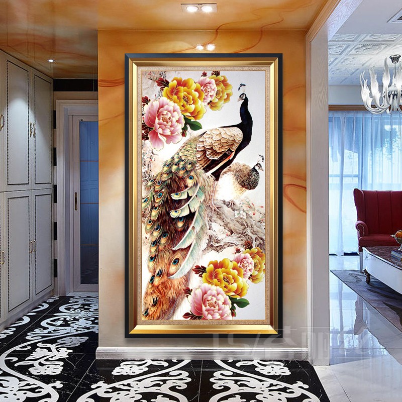 孔雀鉆石畫豎版玄關客廳富貴牡丹花開鉆石繡歐式鳳凰貼鉆十字繡5d1入