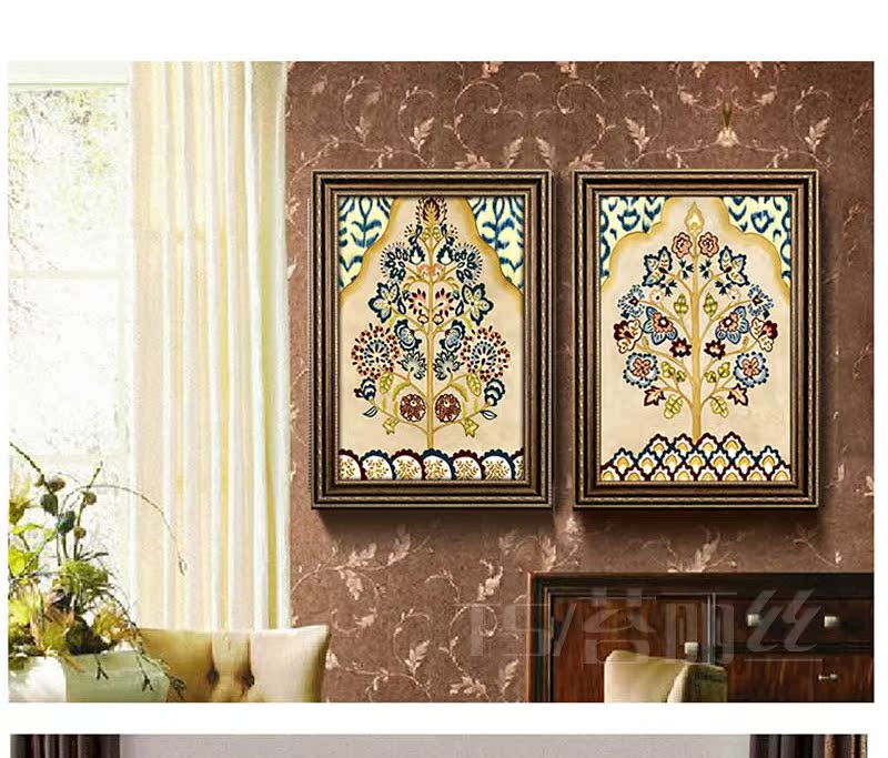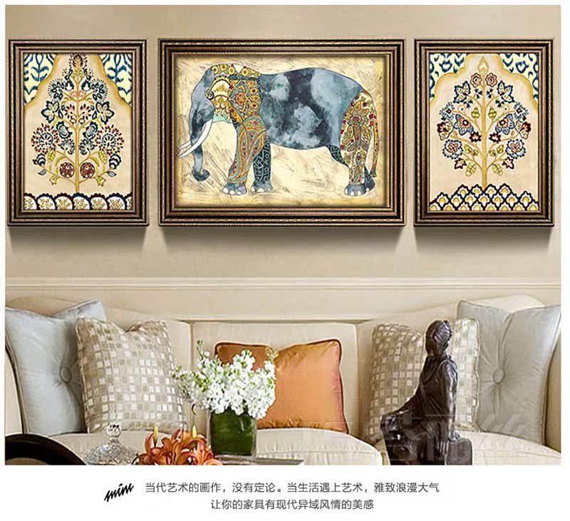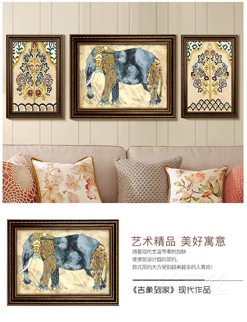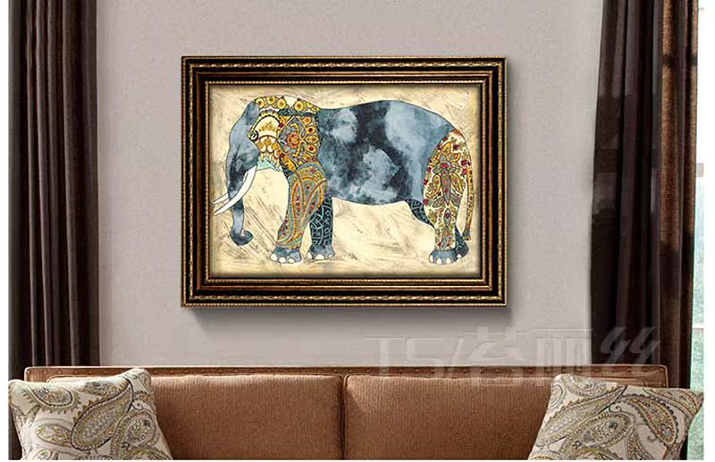 十字繡2018新款三聯畫歐式風格吉祥大象發財樹滿繡客廳美式刺繡線1入
