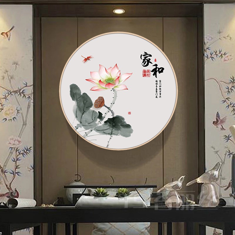 鉆石畫餐廳鉆繡2018新款臥室點鉆十字繡家和富貴蓮花圓形5d鉆石繡1入