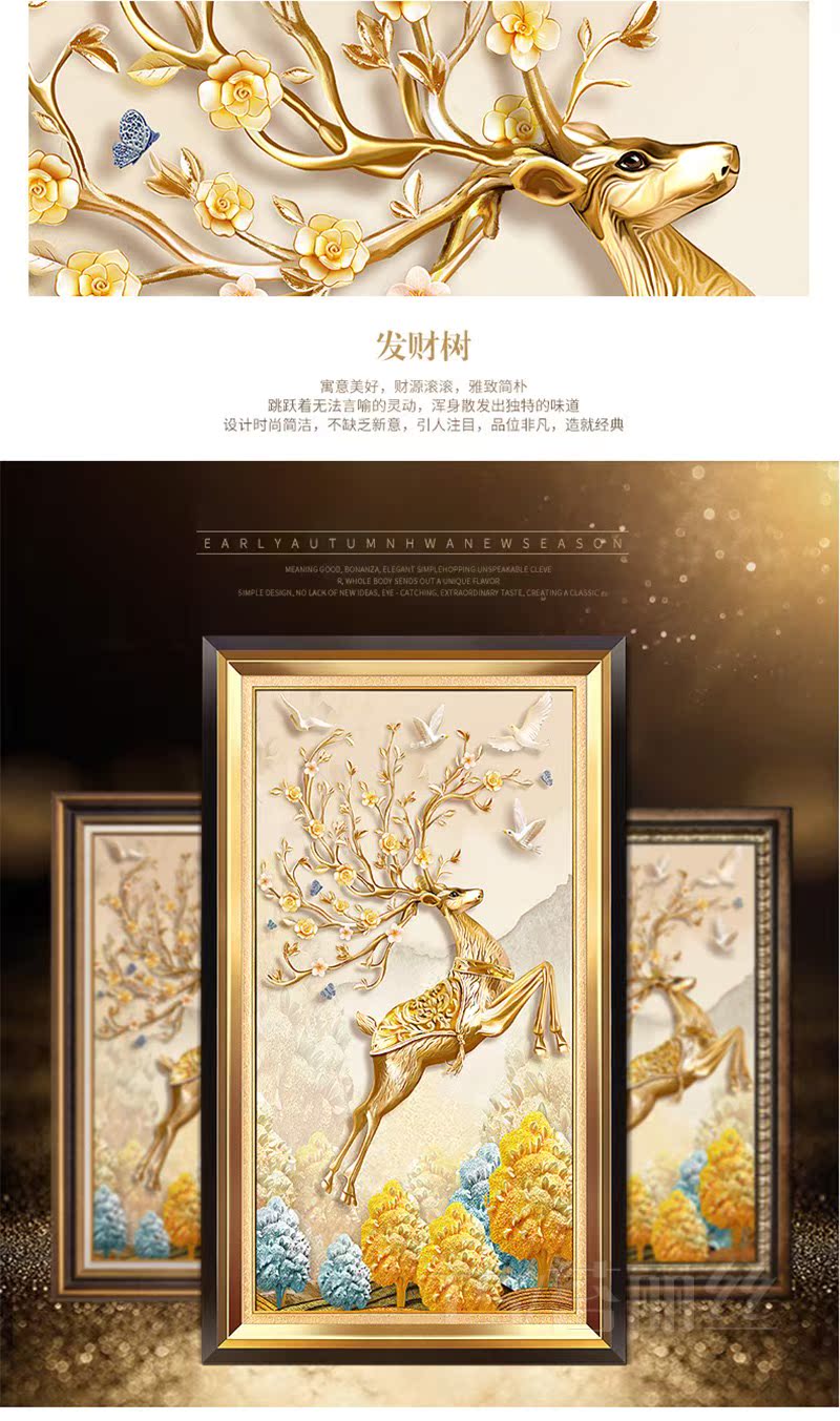 十字繡客廳2018新款發財鹿線繡現代歐式玄關用過道豎版全棉線刺繡1入