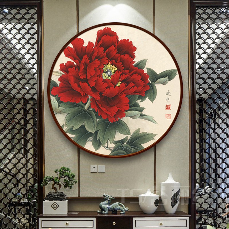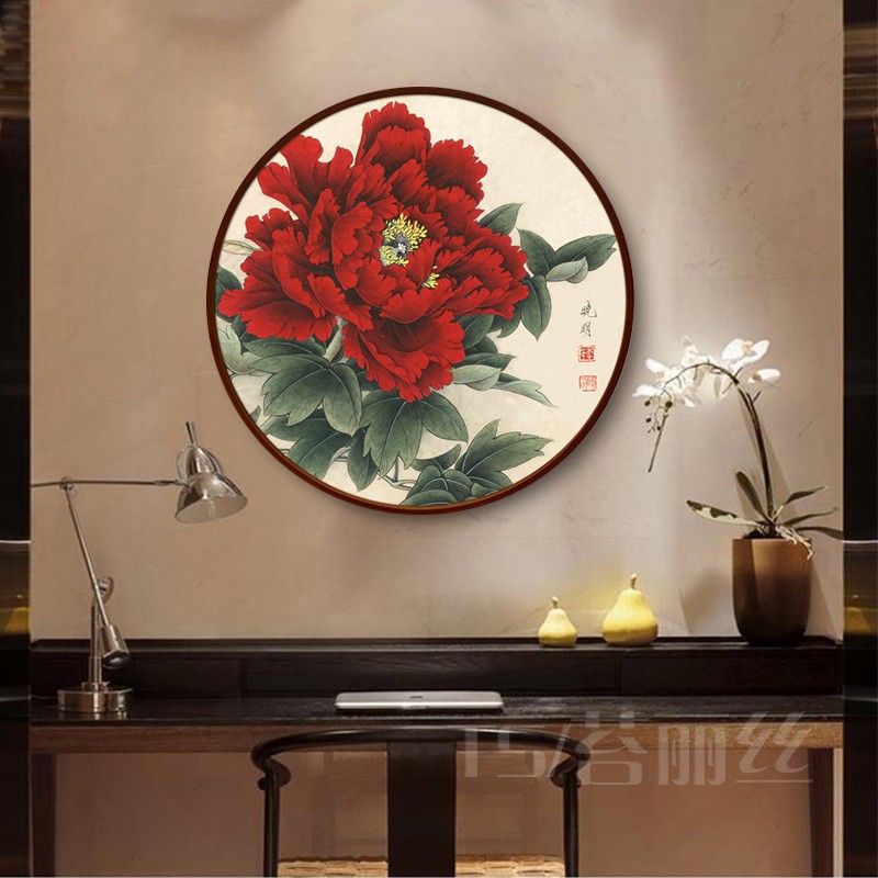 鉆石畫2019新款牡丹花滿鉆花開富貴小幅圓形鉆石繡十字繡5d磚石畫1入