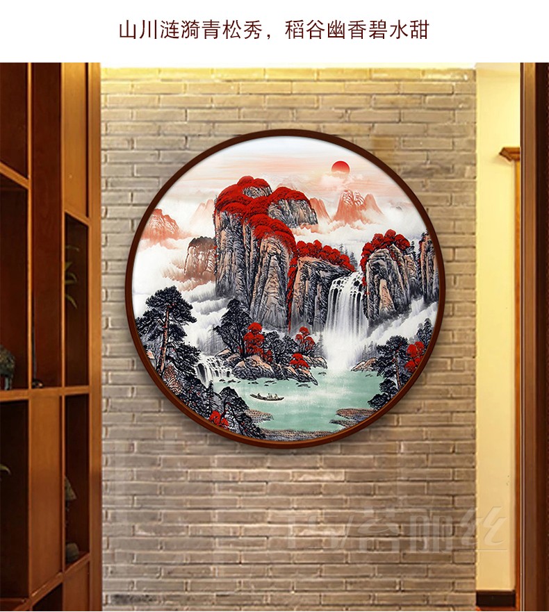 鉆石畫滿鉆鴻運當頭國畫山水畫聚寶盆招財圓形十字繡點鉆畫鉆石繡1入