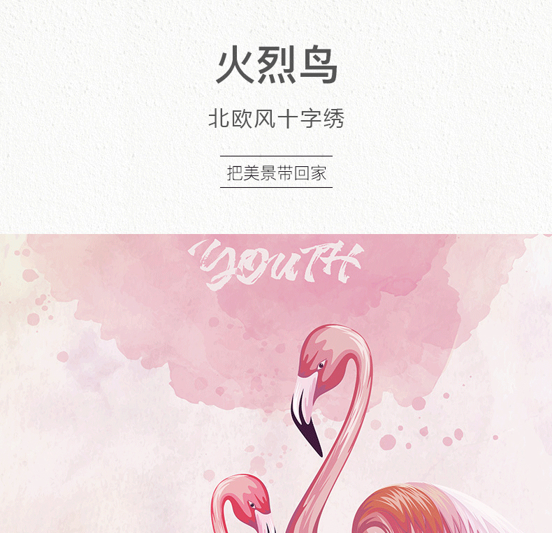 北歐時尚火烈鳥十字繡現代簡約客廳三聯臥室3d印花新手簡單繡刺繡1入