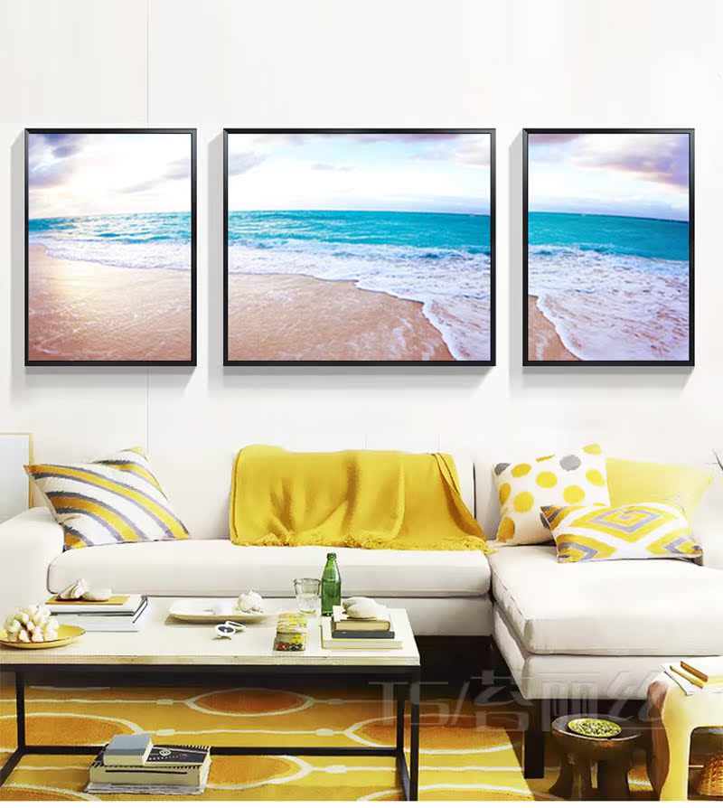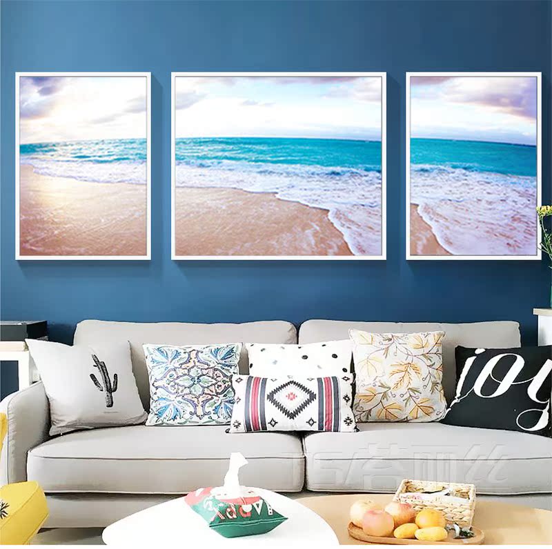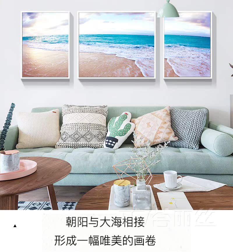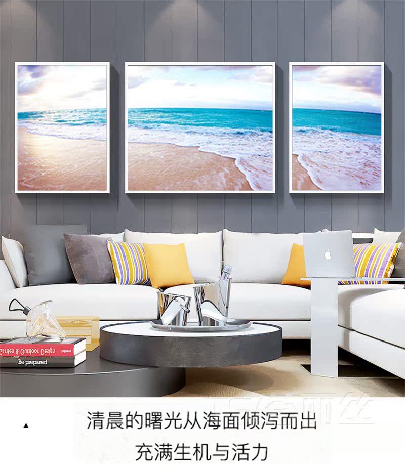 客廳新款鉆石畫滿鉆現代簡約大海沙灘浪漫北歐餐廳貼鉆十字繡三聯1入