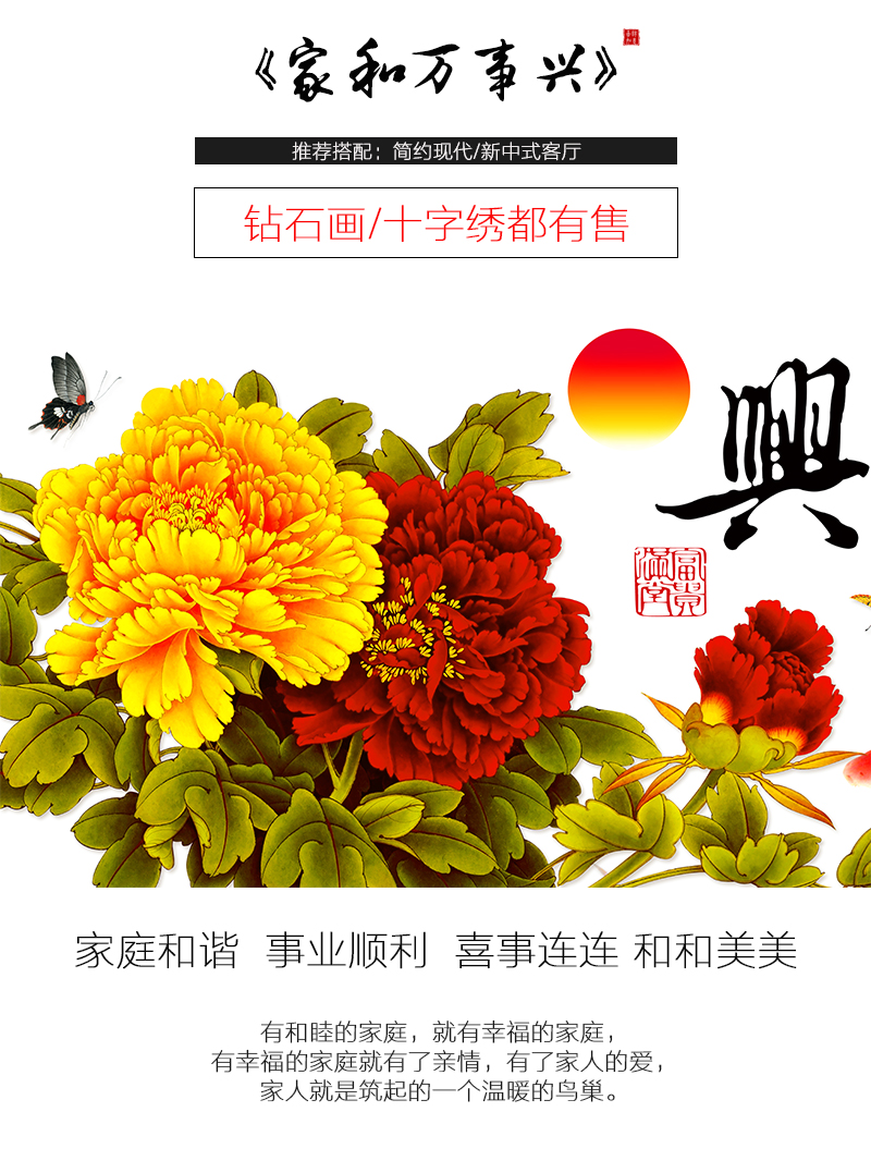 十字繡家和萬事興新款簡單繡半繡現代客廳牡丹花開新手初學者刺繡1入