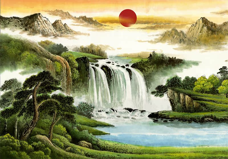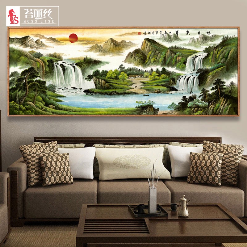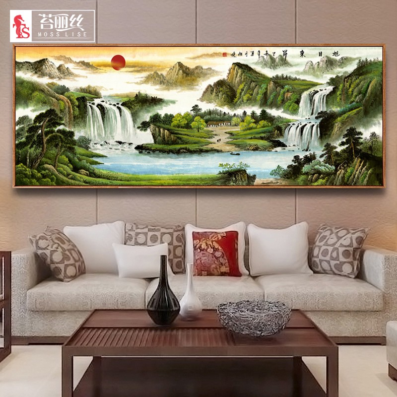 5d鉆石畫滿鉆新款現代中式客廳山水畫旭日東升大幅十字繡圓鉆石繡1入