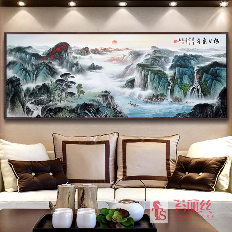 5d鉆石畫貼鉆十字繡2018新款旭日東升現代客廳大幅辦公室鉆石繡1入