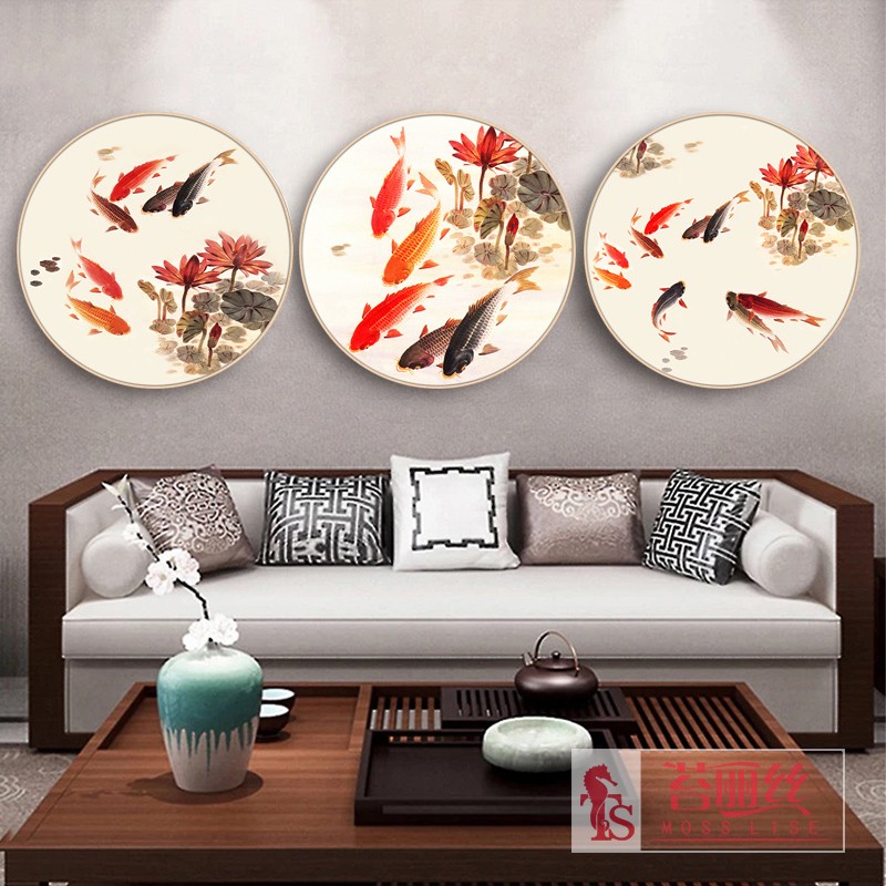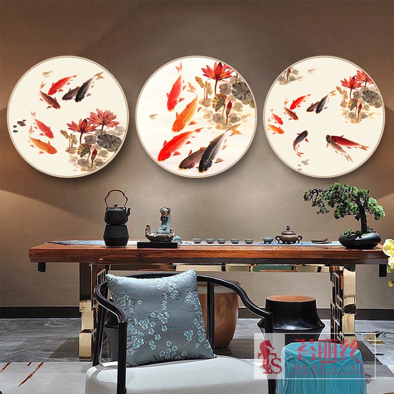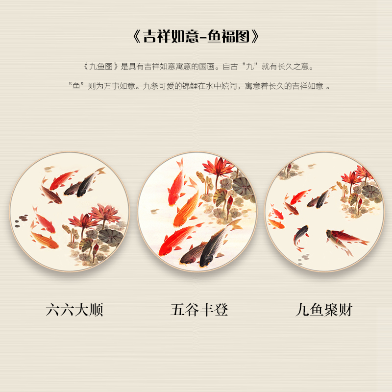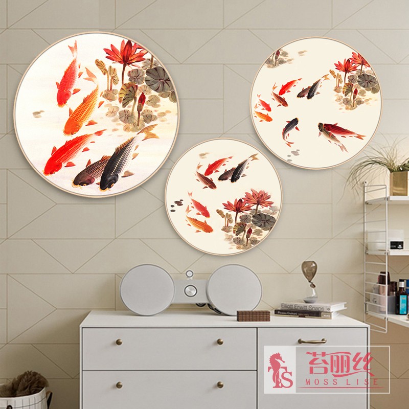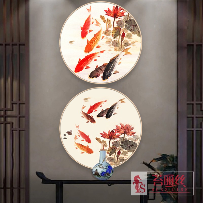 鉆石畫魚福圖六六大順新款2018小幅圓形十字繡粘鉆畫臥室書房掛畫1入
