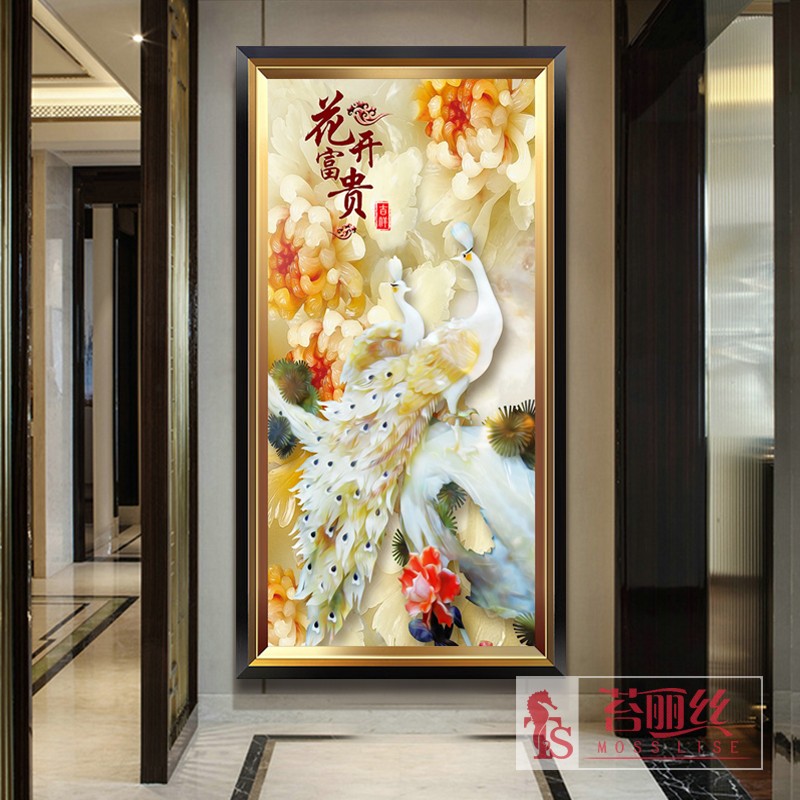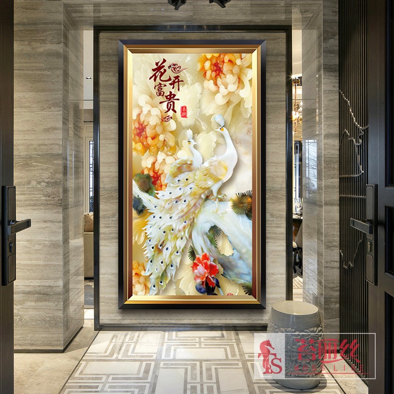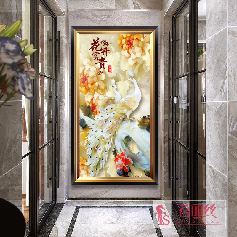 5d立體鉆石畫玄關十字繡客廳2018新款富貴孔雀鉆石繡滿鉆豎版過道1入