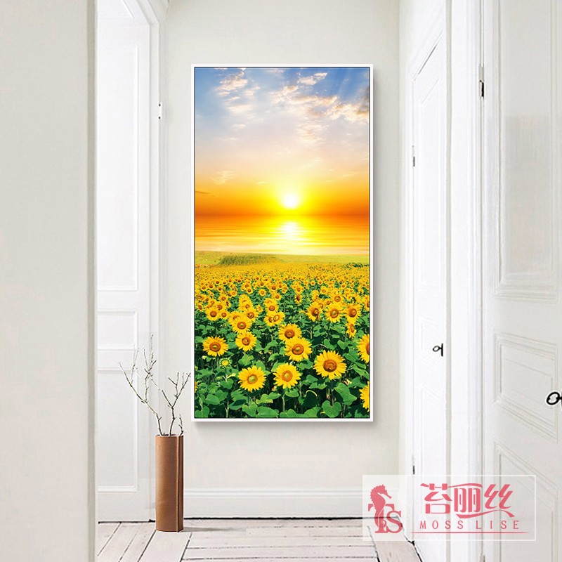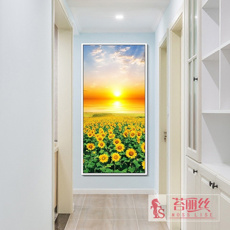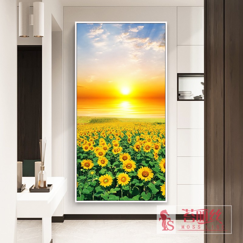 鉆石繡2018新款向日葵鉆石畫滿鉆花卉點鉆十字繡豎版玄關5d鉆石繡1入
