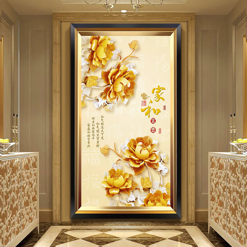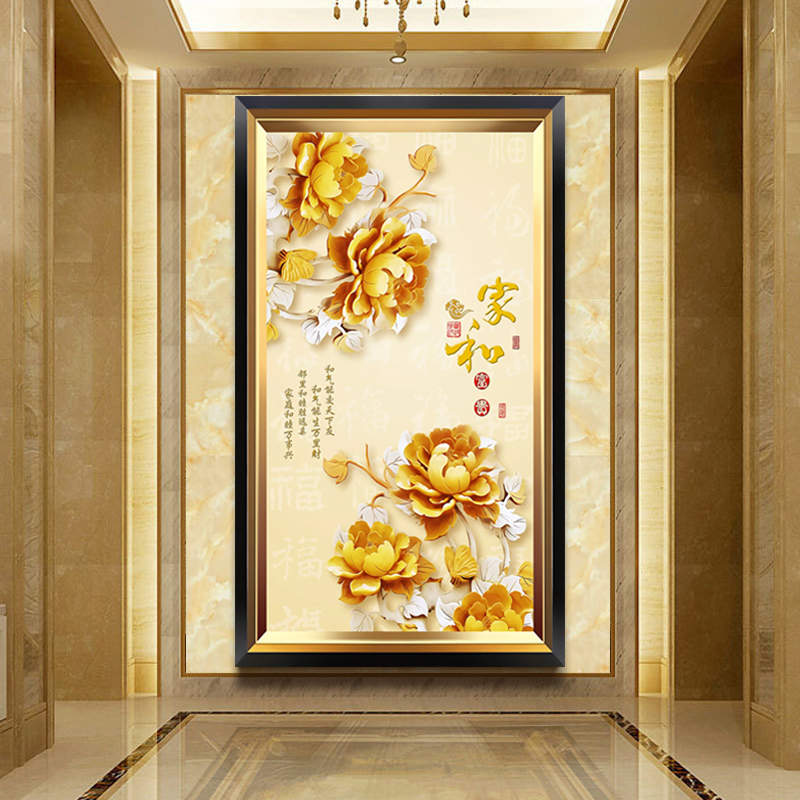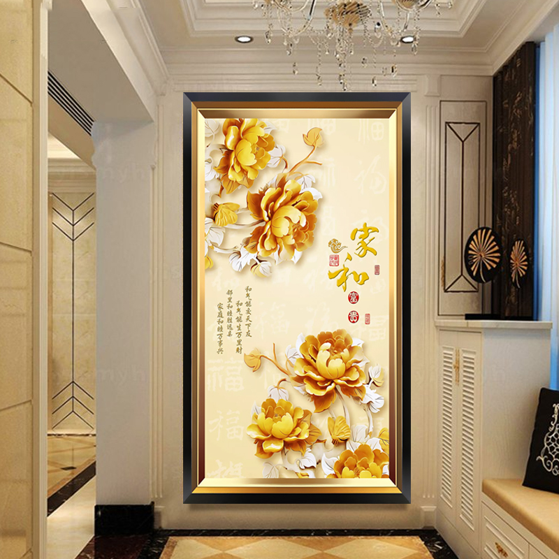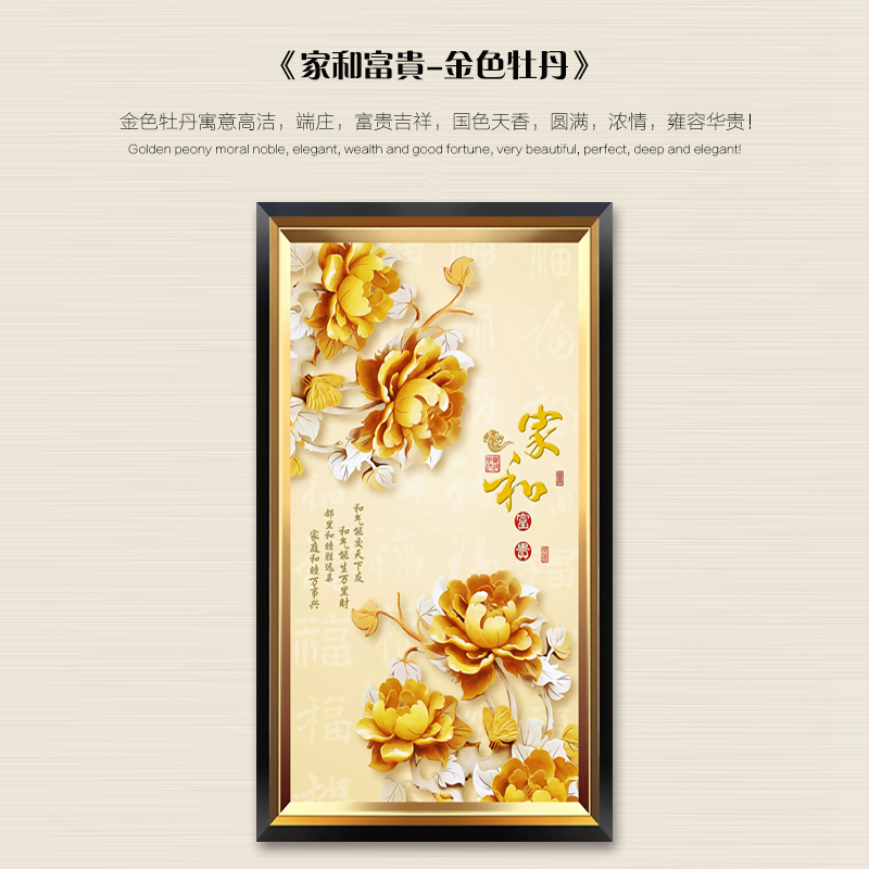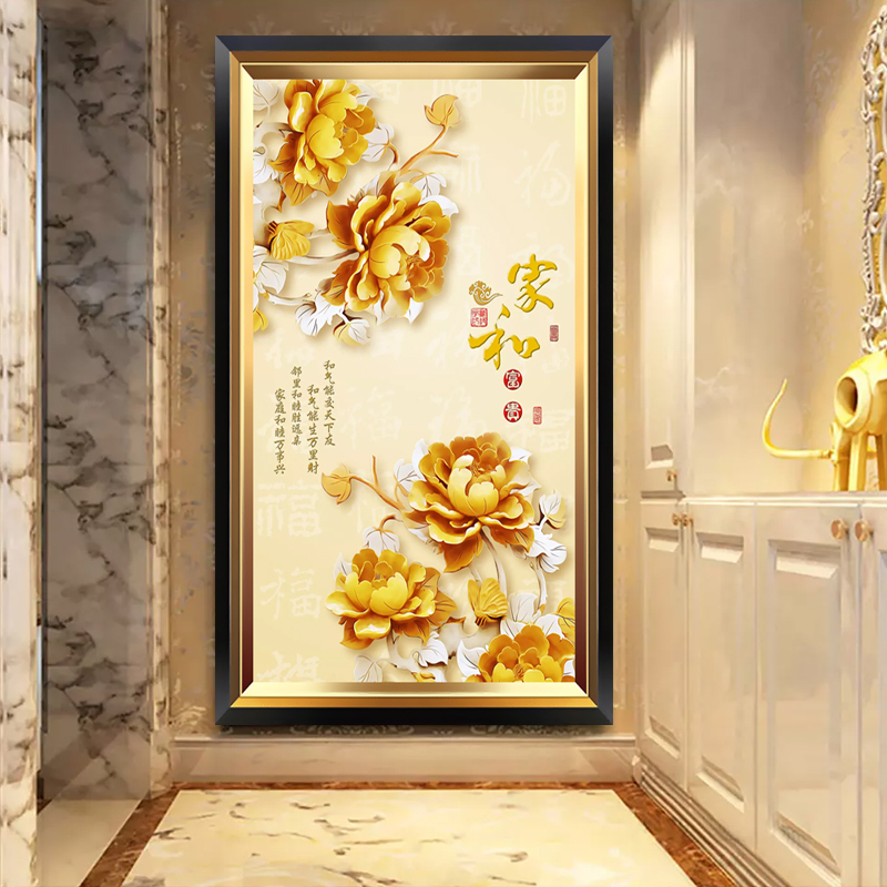 2019新款5d鉆石畫滿鉆牡丹花繡豎版玄關家和富貴貼鉆十字繡開花1入