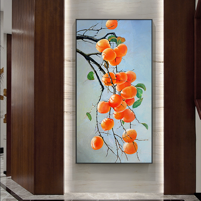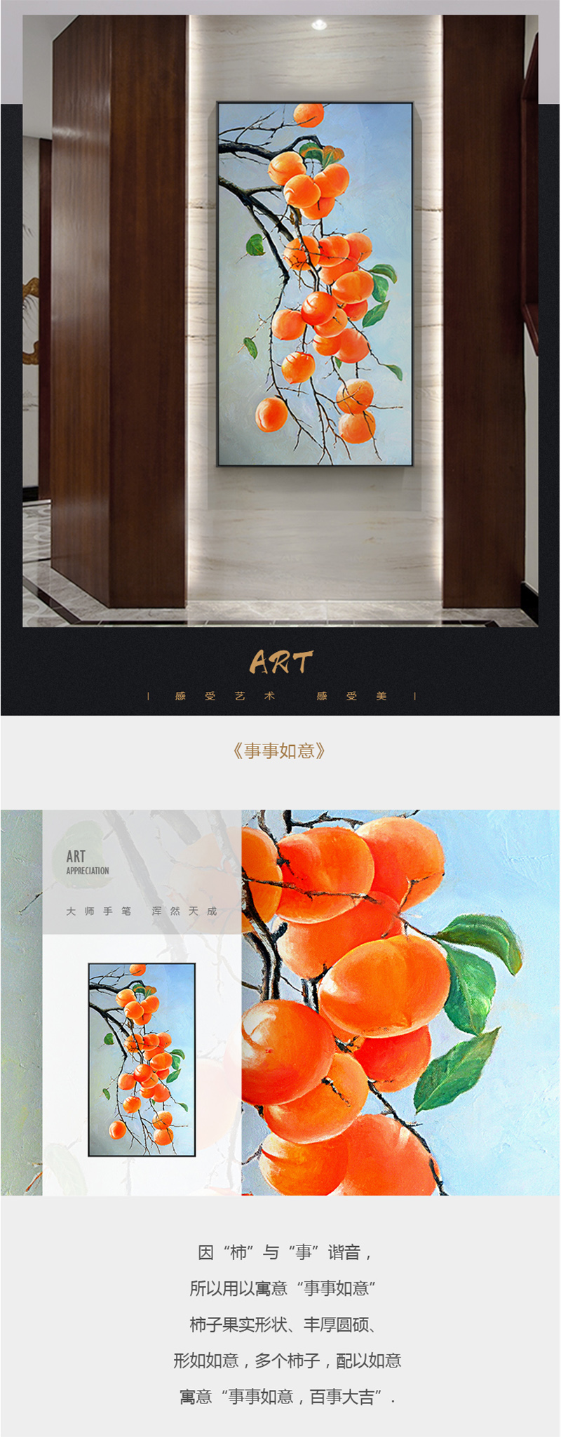新中式簡約客廳鉆石畫滿鉆事事如意吉祥柿子玄關十字繡貼鉆繡豎版1入