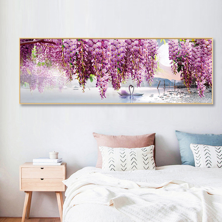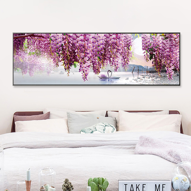 5d鉆石畫臥室床頭畫薰衣草天鵝滿鉆十字繡點鉆畫鉆石繡客廳風景畫1入