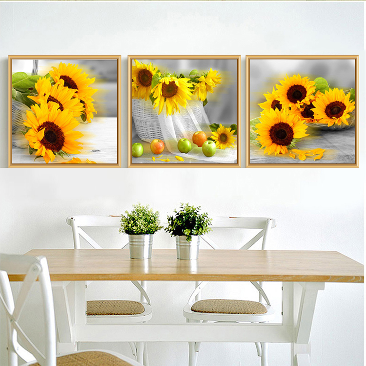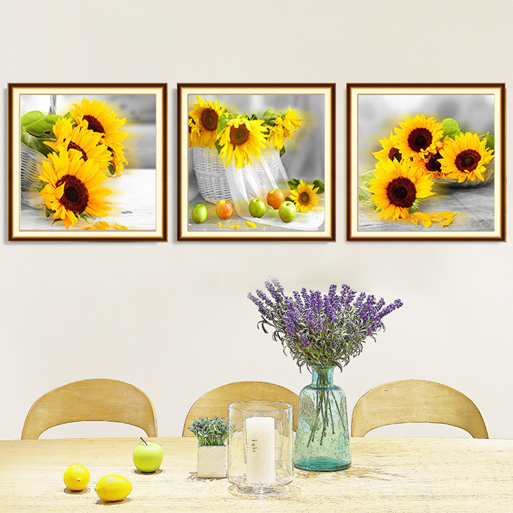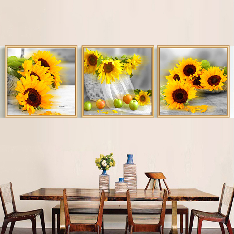 向日葵鉆石畫滿鉆餐廳三聯畫5d客廳花卉點鉆十字繡簡約臥室鉆石繡1入