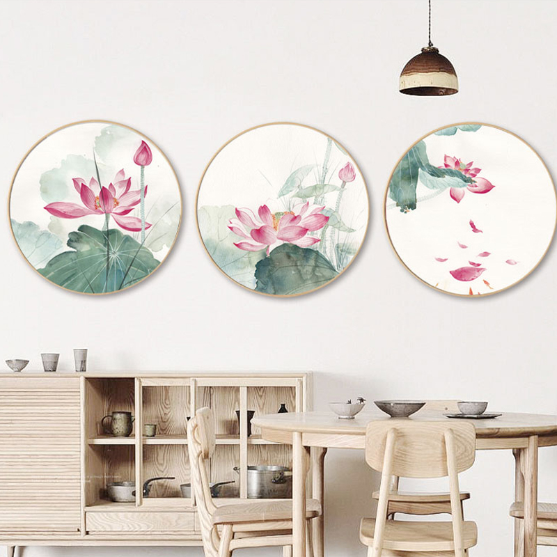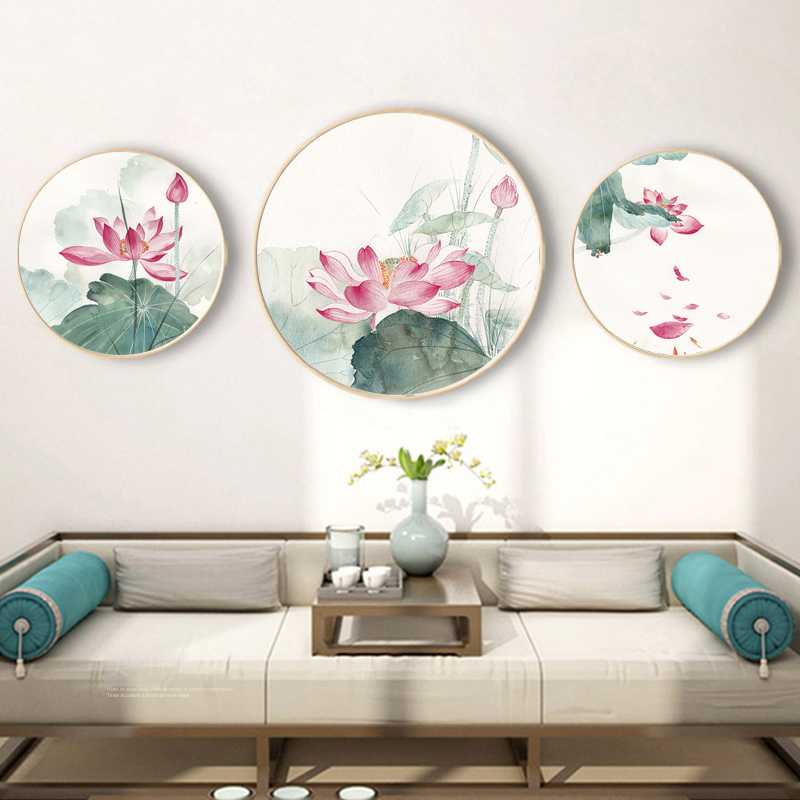 圓形鉆石畫客廳滿鉆荷花圖中國風貼鉆十字繡磚石繡餐廳新款磚石畫1入