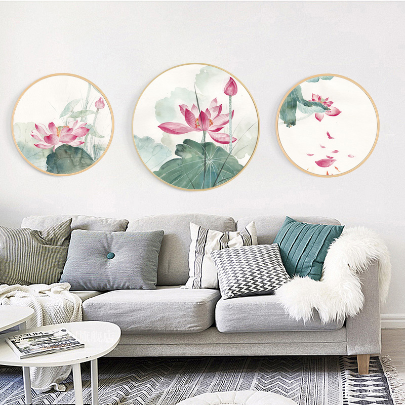 KT613320mm厚板白色框小號 直徑19CM美式客廳沙發背景墻裝飾畫歐式臥室壁畫掛畫餐廳玄關墻畫現代簡約
