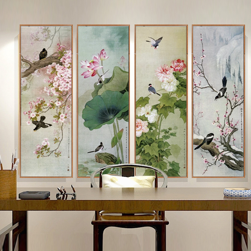 新中式客廳復古鉆石畫滿鉆荷花四聯畫中國風貼鉆十字繡書房鉆石繡1入