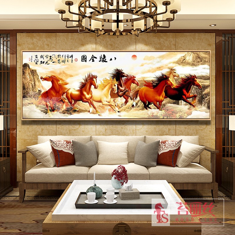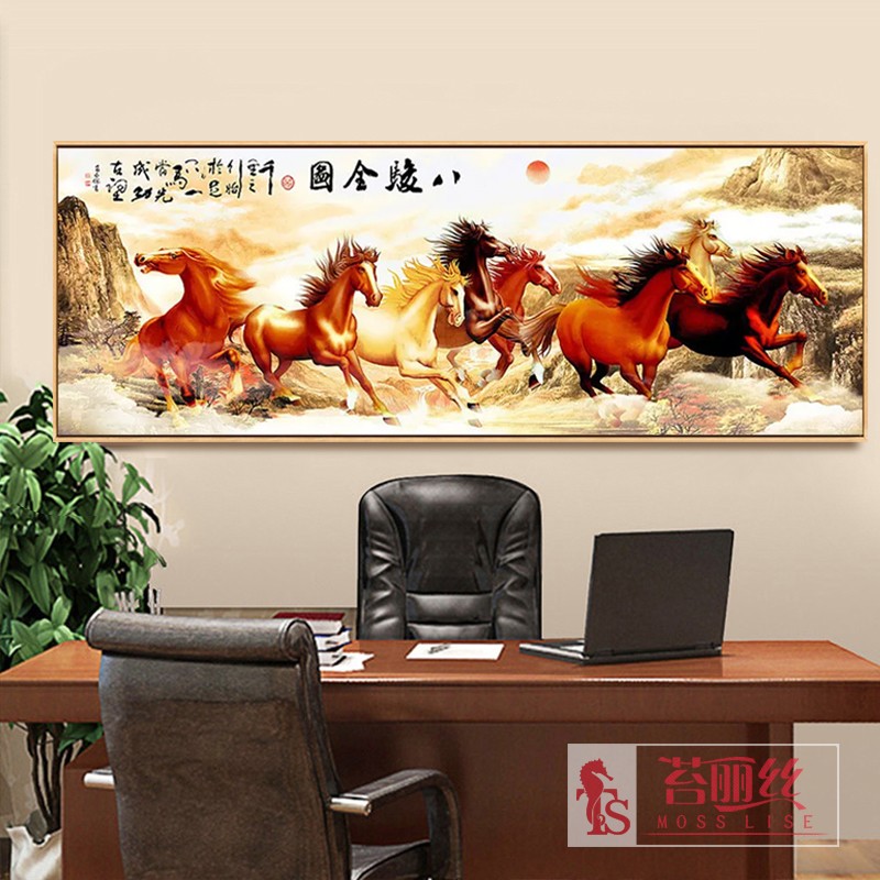 八駿圖十字繡2018新款客廳馬到成功點鉆十字繡辦公室鉆石繡粘鉆畫1入