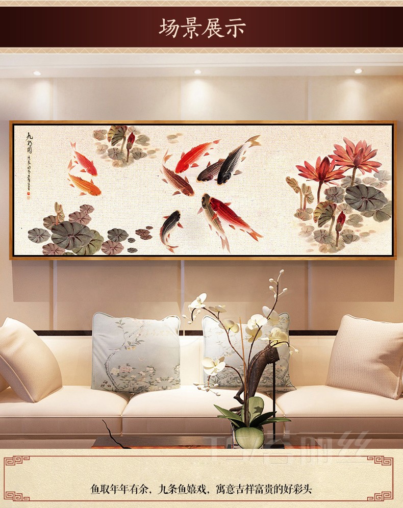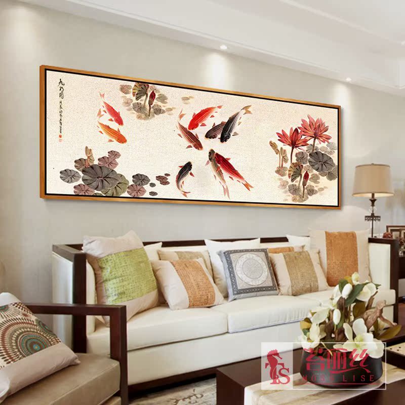 九魚圖鉆石畫滿鉆新款現代中式客廳2018鉆石繡5d圓鉆磚石畫十字繡1入