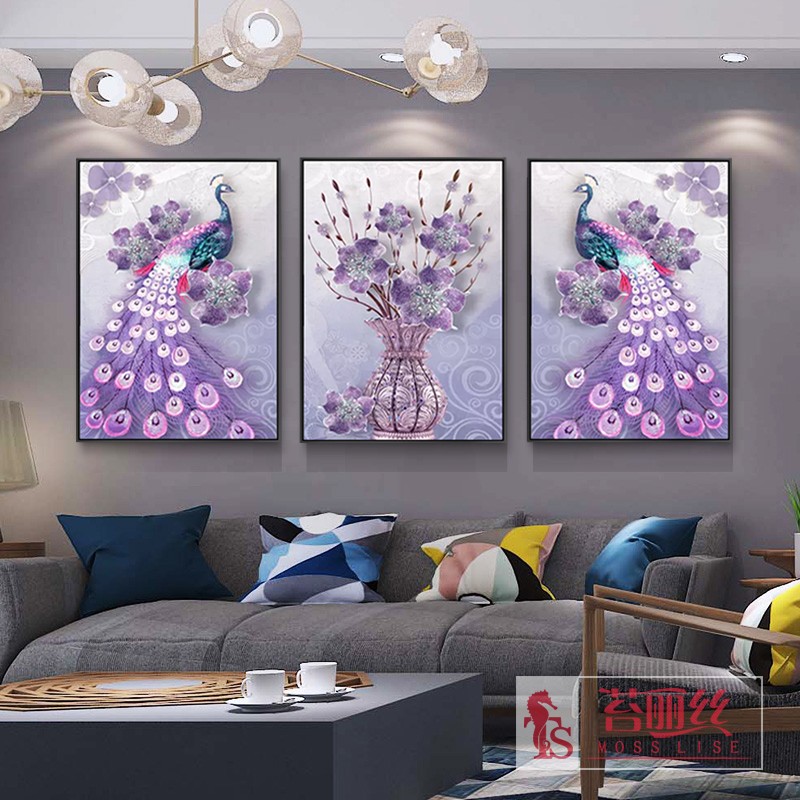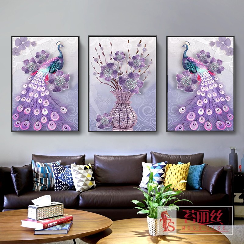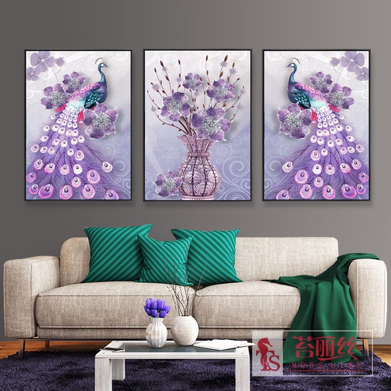 十字繡客廳新款2018繡線繡孔雀簡約現代三連3d精準印花線繡簡單繡1入