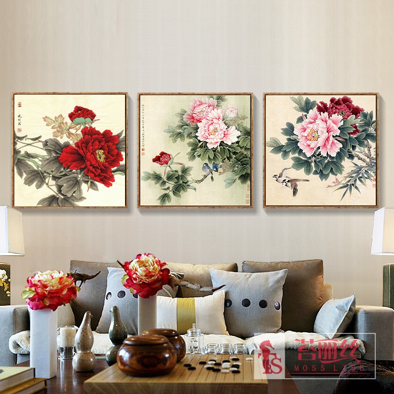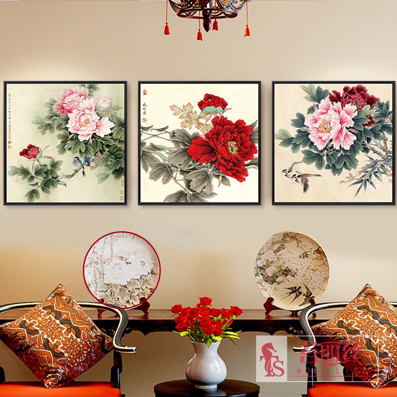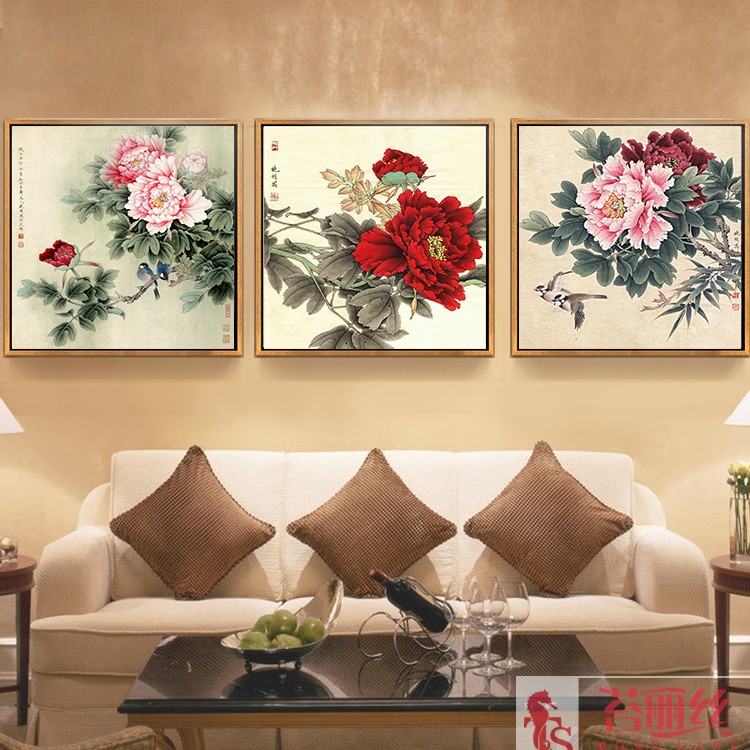 國色牡丹花開富貴十字繡繡圖2018新款線繡簡單繡現代客廳三聯滿繡1入