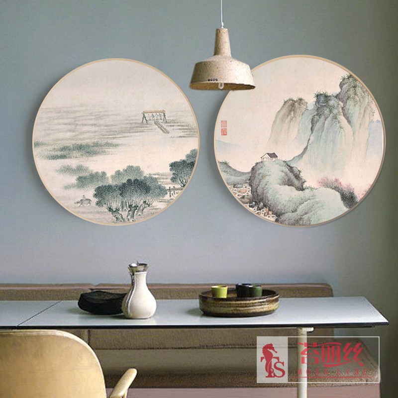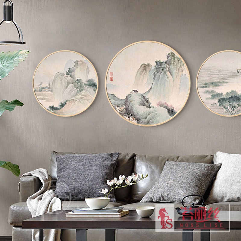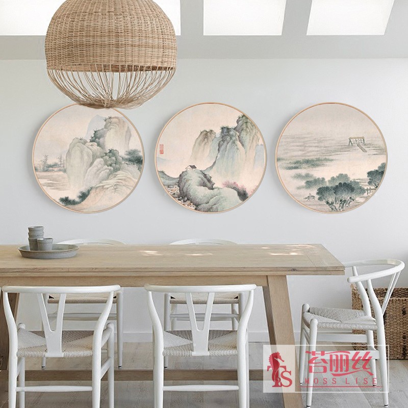 KT613320mm厚板白色框中號 直徑24CM美式客廳沙發背景墻裝飾畫歐式臥室壁畫掛畫餐廳玄關墻畫現代簡約