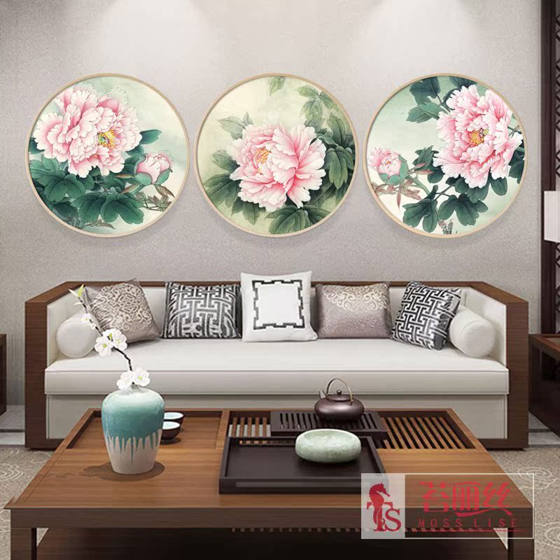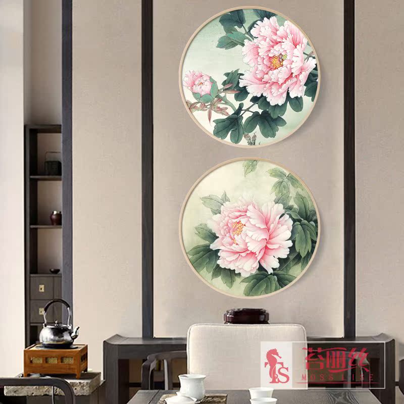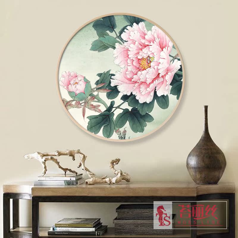 KT613320mm厚板白色框中號 直徑24CM美式客廳沙發背景墻裝飾畫歐式臥室壁畫掛畫餐廳玄關墻畫現代簡約