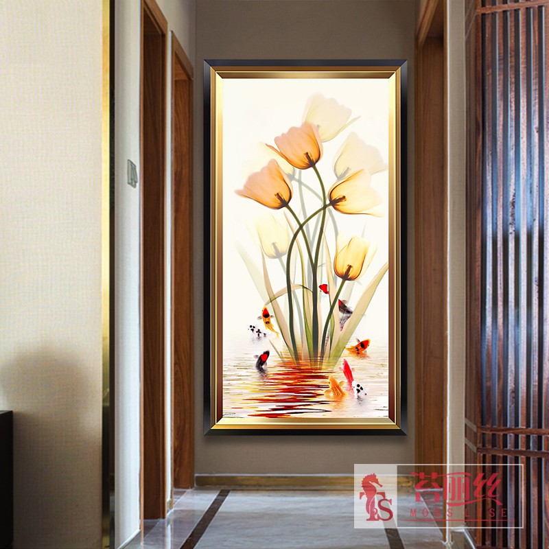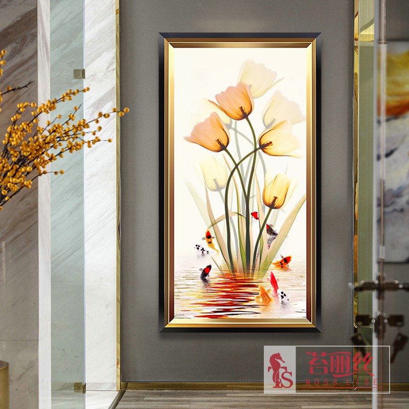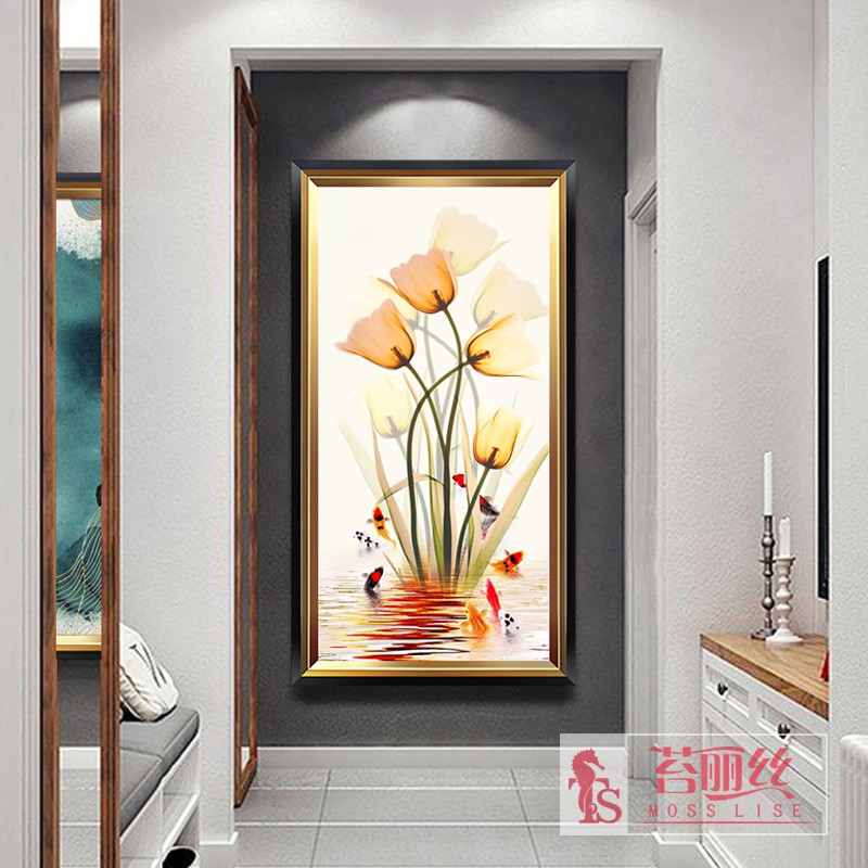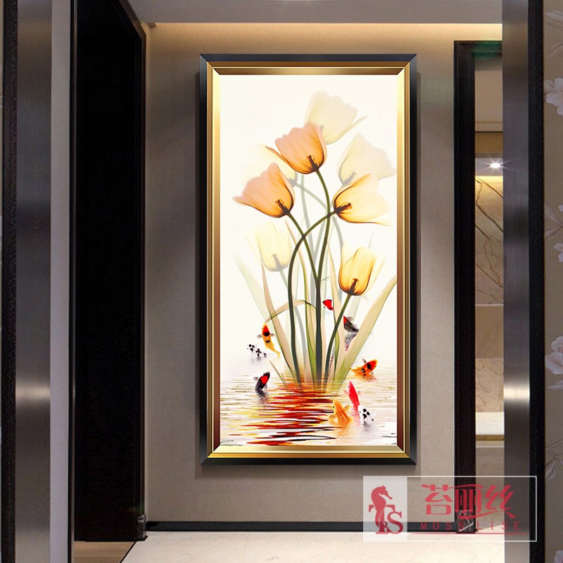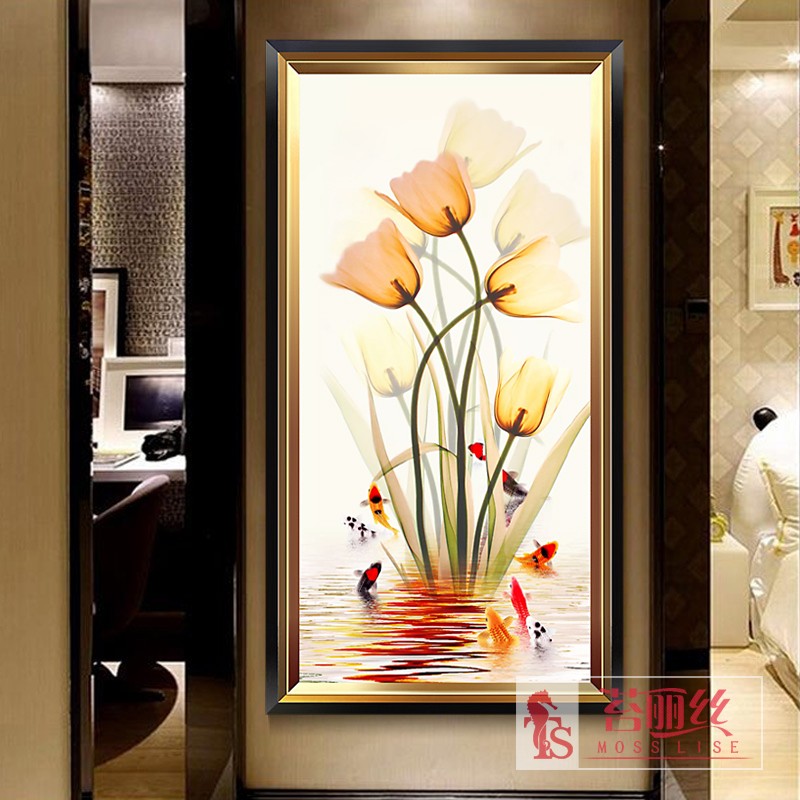 郁金香鉆石畫粘鉆十字繡滿鉆5d新款玄關豎版鉆石繡富貴九魚磚石畫1入