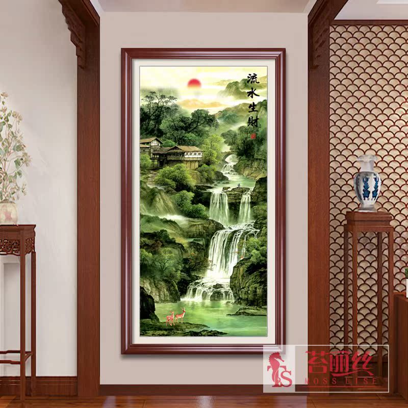 鉆石畫滿鉆新款2018 簡約現代中式玄關過道豎版粘鉆十字繡磚石繡1入