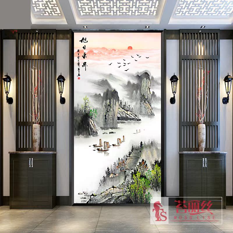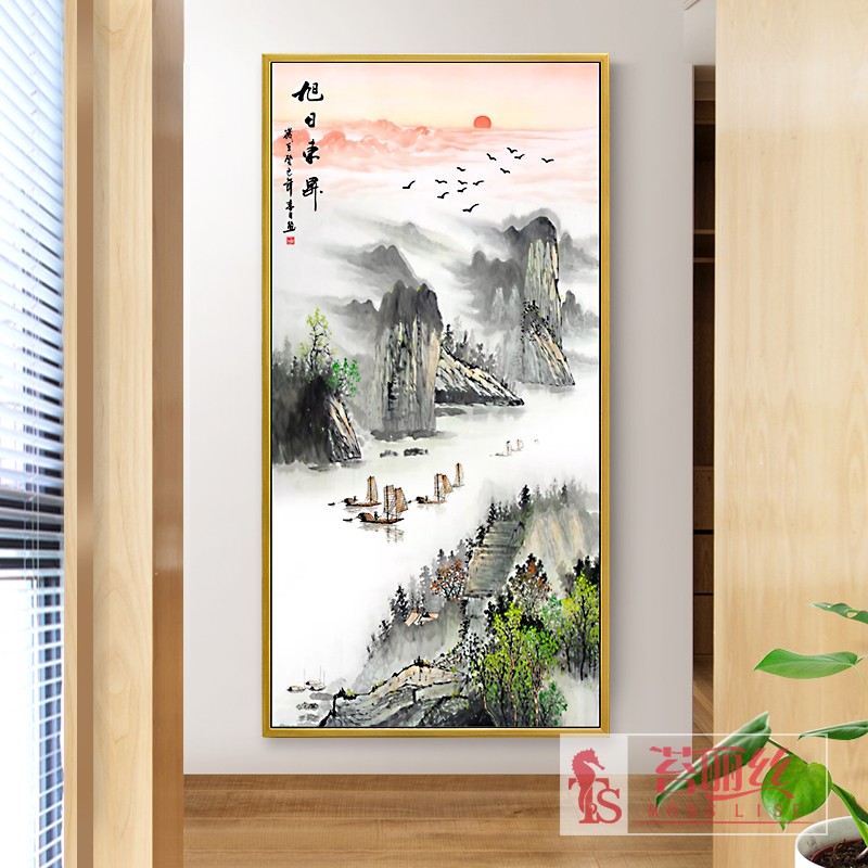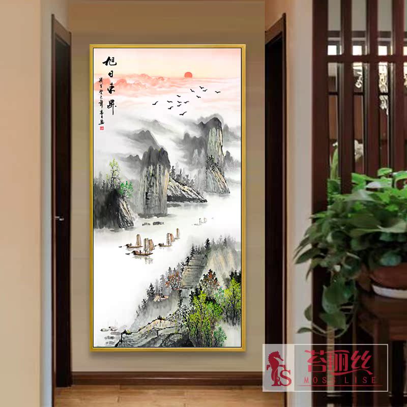 新款5d鉆石畫滿鉆旭日東升客廳現代中式玄關豎版山水畫點鉆十字繡1入