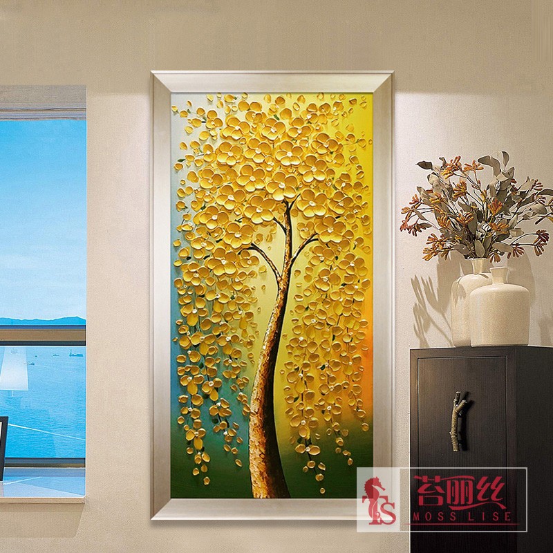 新款鉆石繡發財樹客廳滿鉆石畫搖錢樹貼鉆十字繡玄關5d磚石畫豎版1入