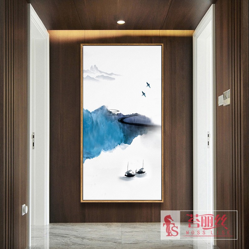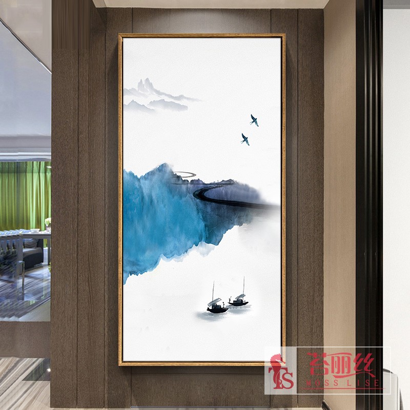 新中式禪意水墨抽象鉆石畫現代客廳玄關豎版單幅鉆石繡十字繡掛畫1入