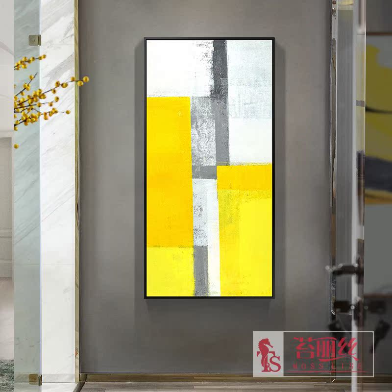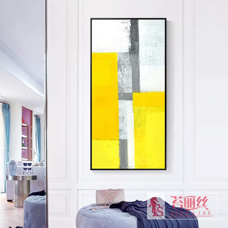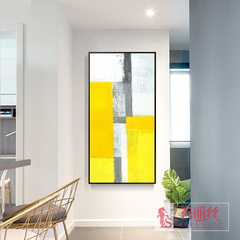 北歐簡約黃與灰創意藝術十字繡鉆石畫豎版滿鉆新款玄關過道走廊畫1入