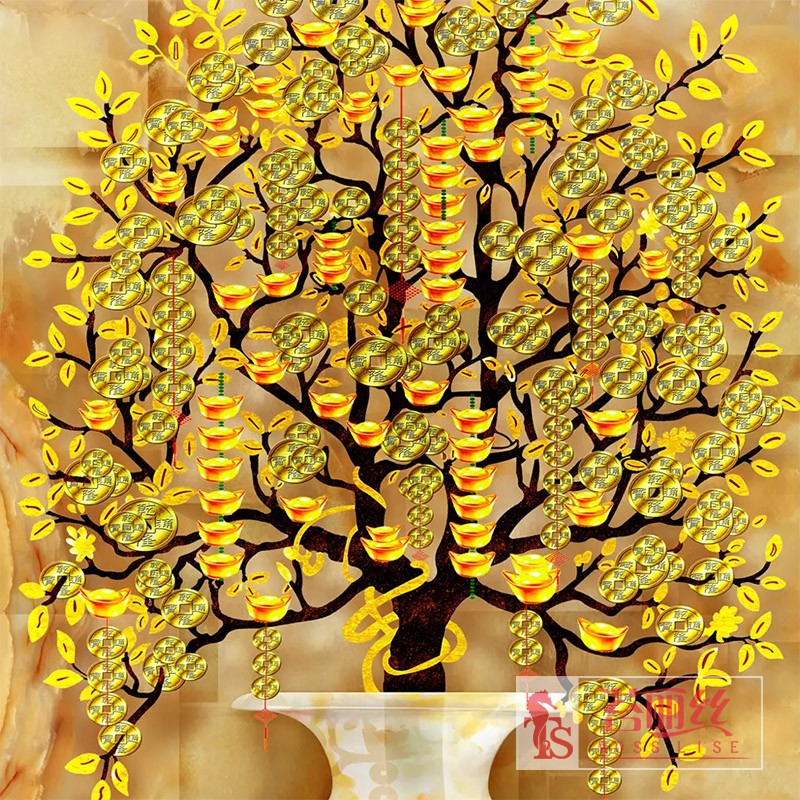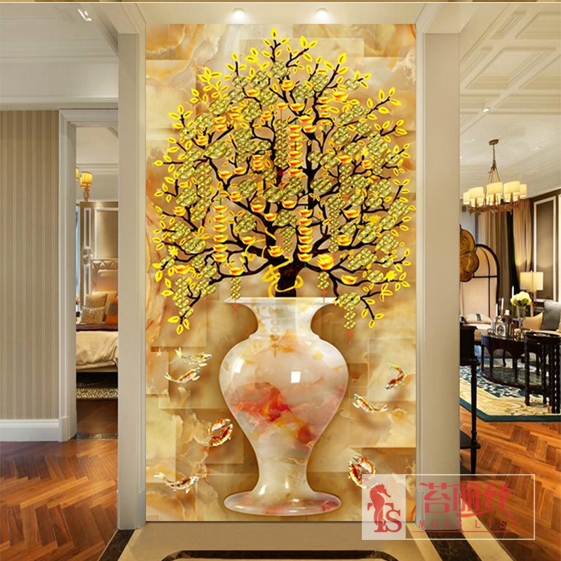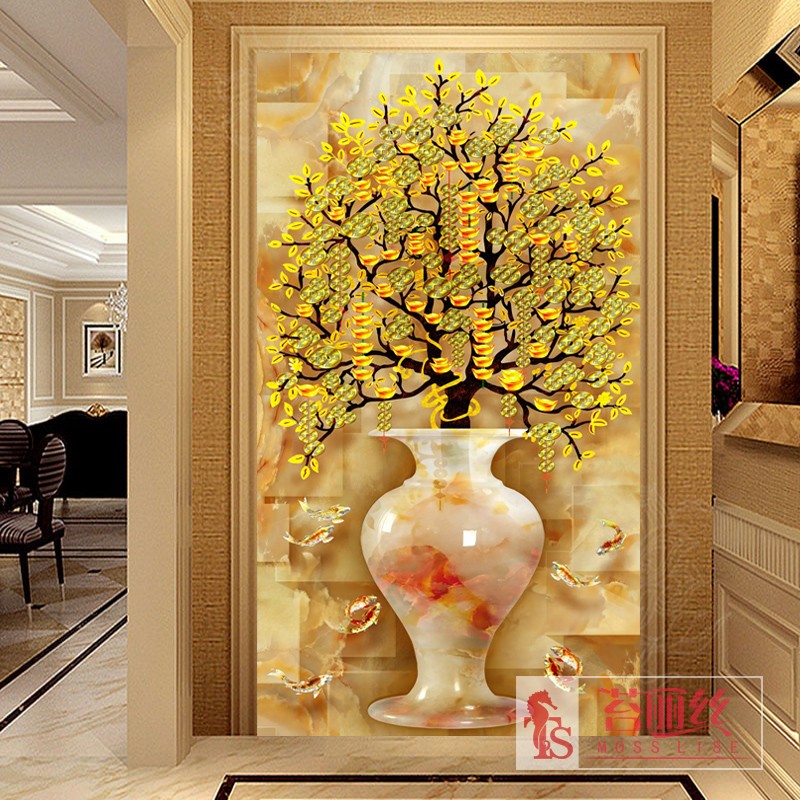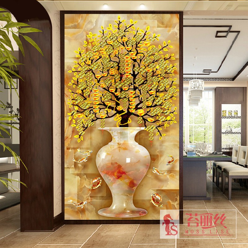搖錢樹鉆石畫滿鉆新款5d鉆石繡玄關客廳富貴花瓶粘鉆十字繡豎版畫1入