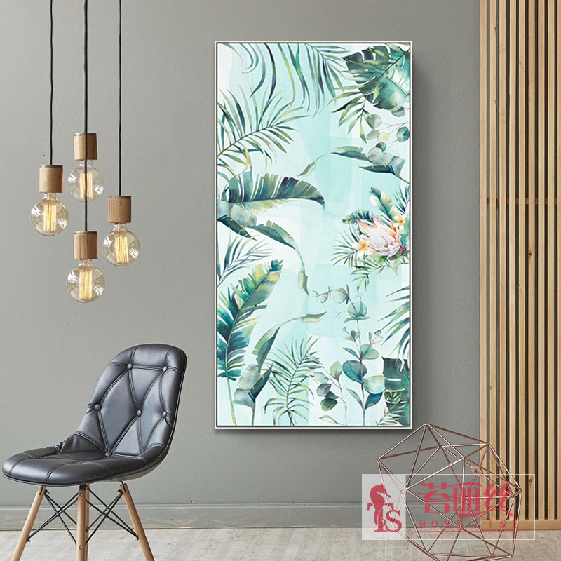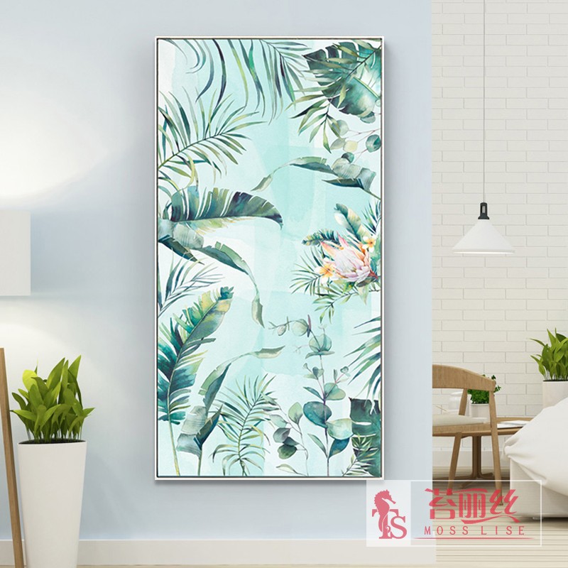 北歐清新簡約植物派鉆石畫豎版優雅客廳玄關貼鉆十字繡圓鉆磚石畫1入