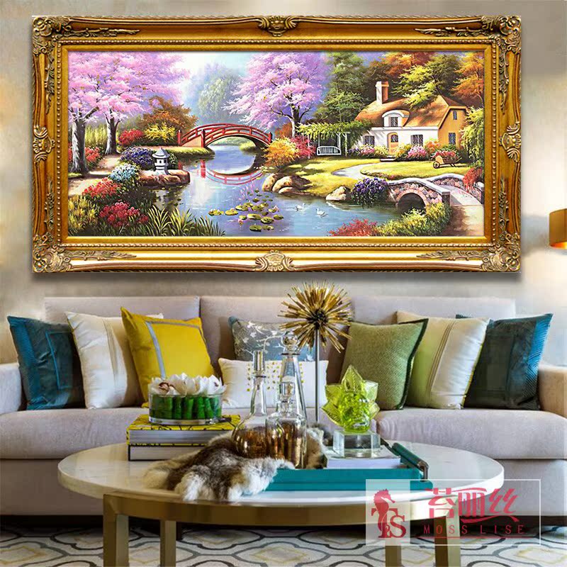 幸福家園歐式鉆石畫滿鉆風景客廳田園風格浪漫櫻花樹點鉆石十字繡1入