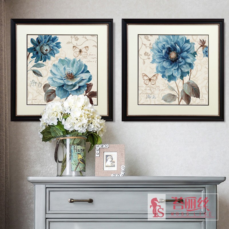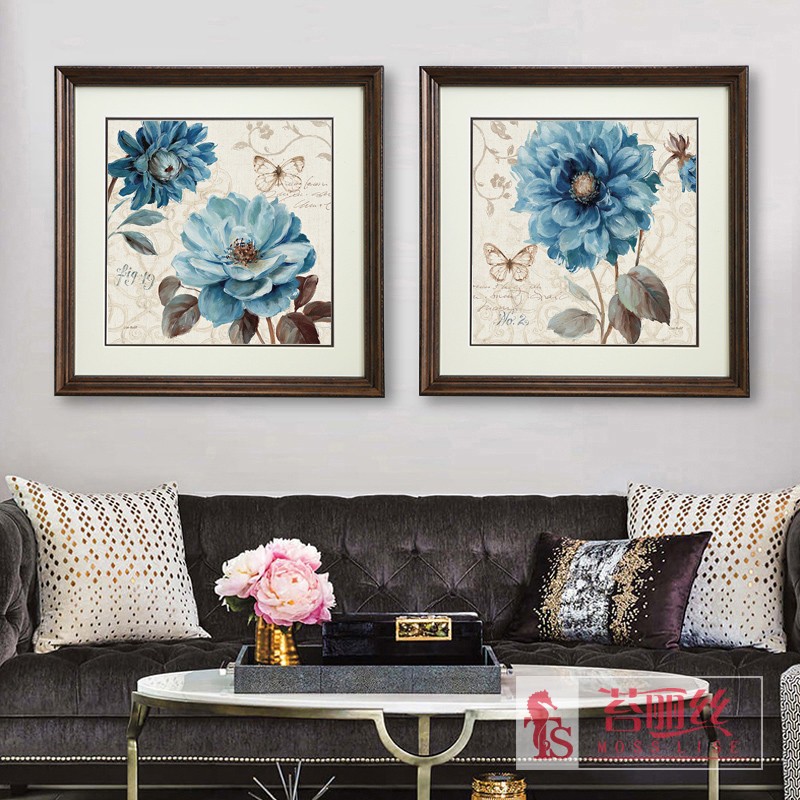鉆石畫滿鉆藍色花卉蝴蝶貼鉆十字繡美式田園鉆石繡餐廳掛畫磚石畫1入