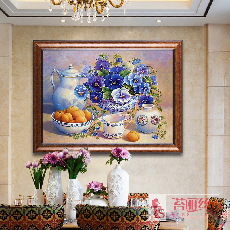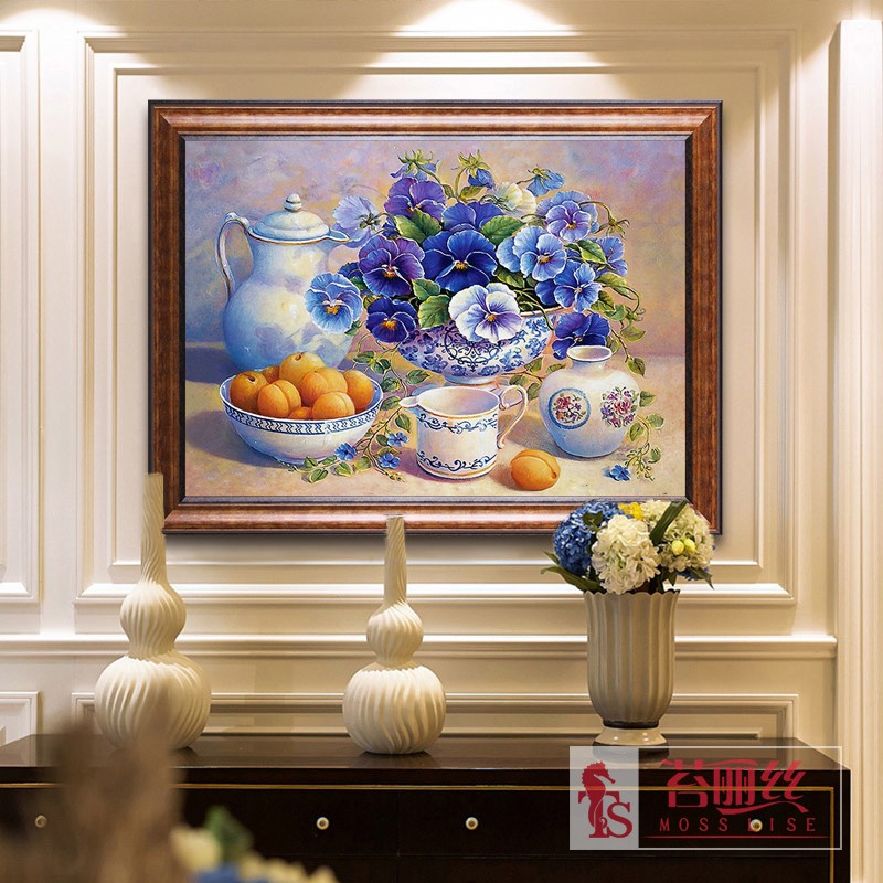 餐廳鉆石畫滿鉆新款5d現代簡約歐式花瓶水果靜物貼鉆十字繡磚石畫1入
