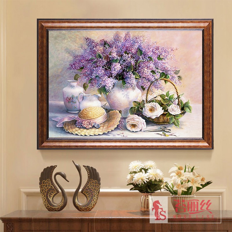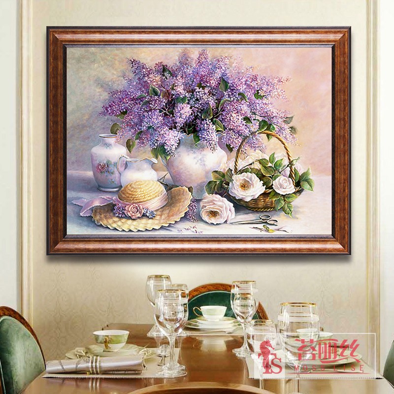 鉆石畫滿鉆新款?植物花卉萱衣草餐廳鉆石十字繡臥室磚石畫點鉆繡1入