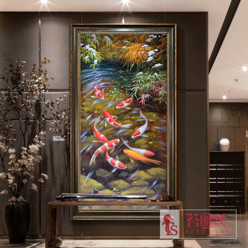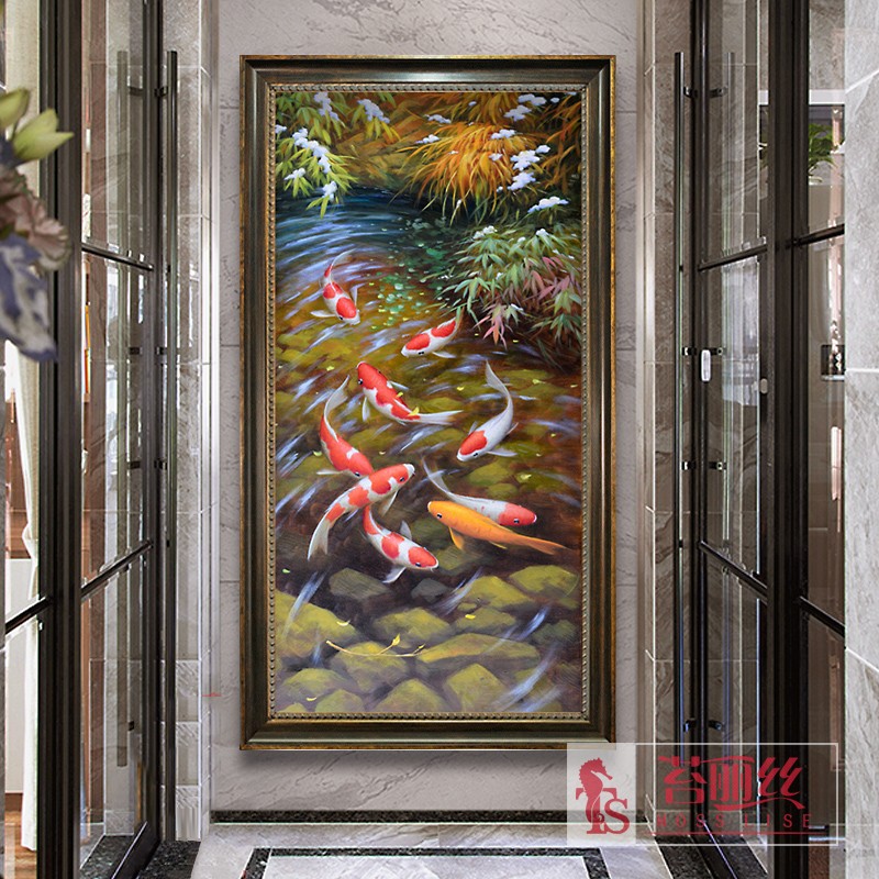 九魚圖豎版玄關鉆石畫十字繡滿鉆現代客廳貼鉆繡圓鉆磚石畫鉆石秀1入