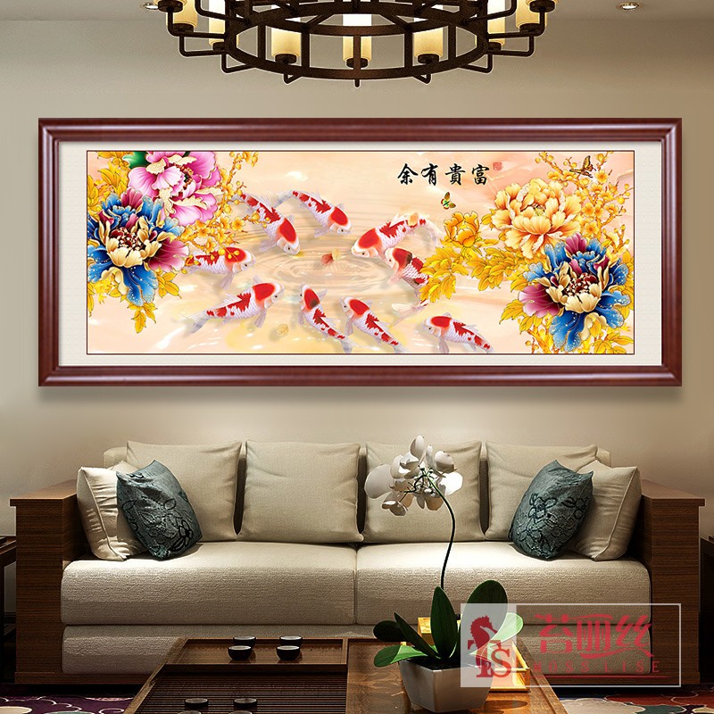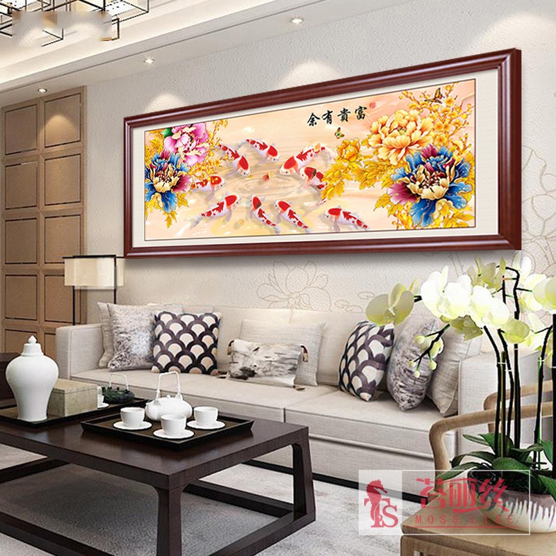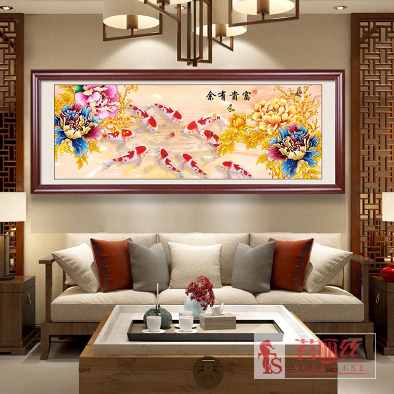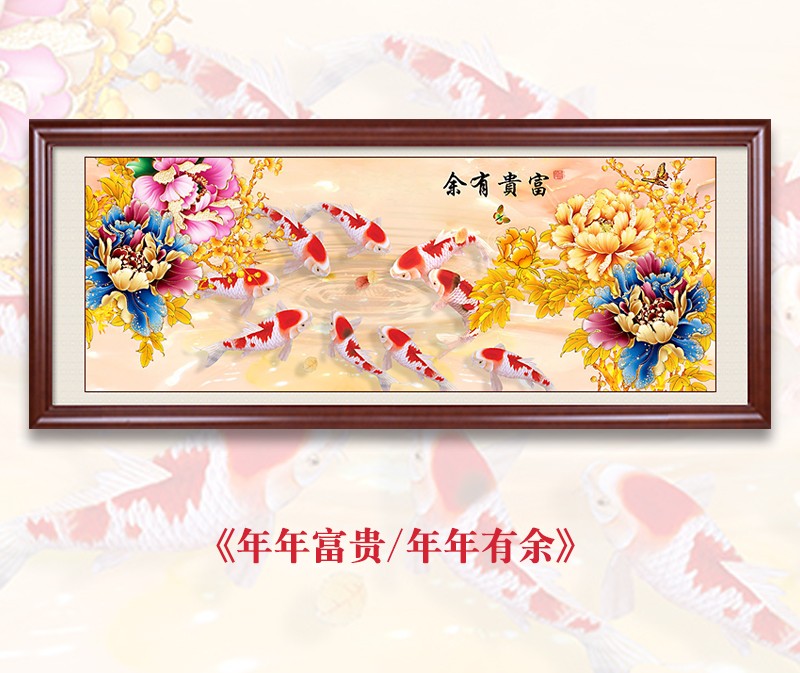 年年有余鉆石畫滿鉆新款花開富貴牡丹九魚圖客廳現代鉆石繡十字繡1入
