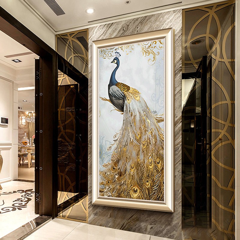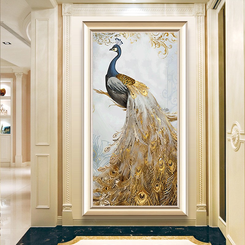 孔雀十字繡滿繡2019新款精準印花鳳凰豎版簡歐客廳線繡全繡棉線繡1入