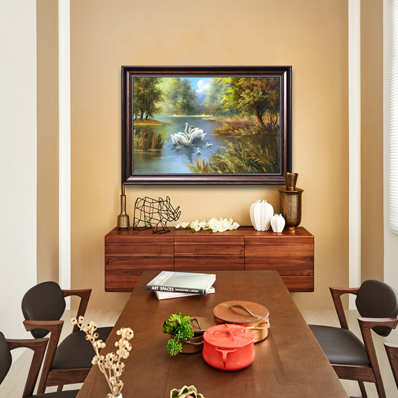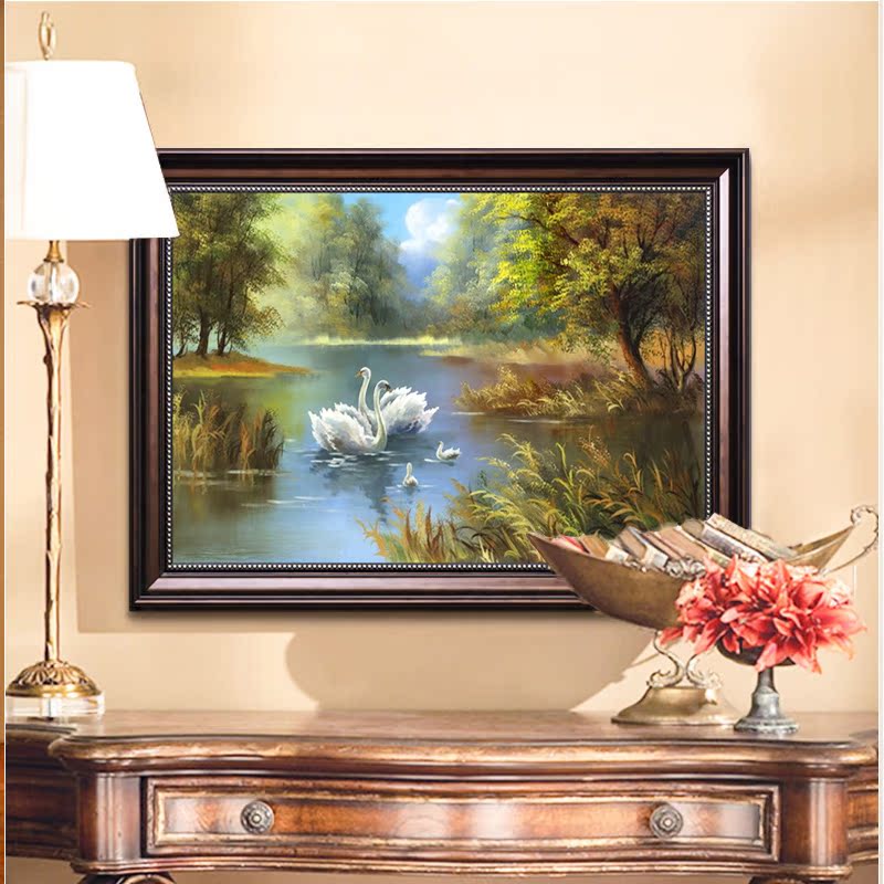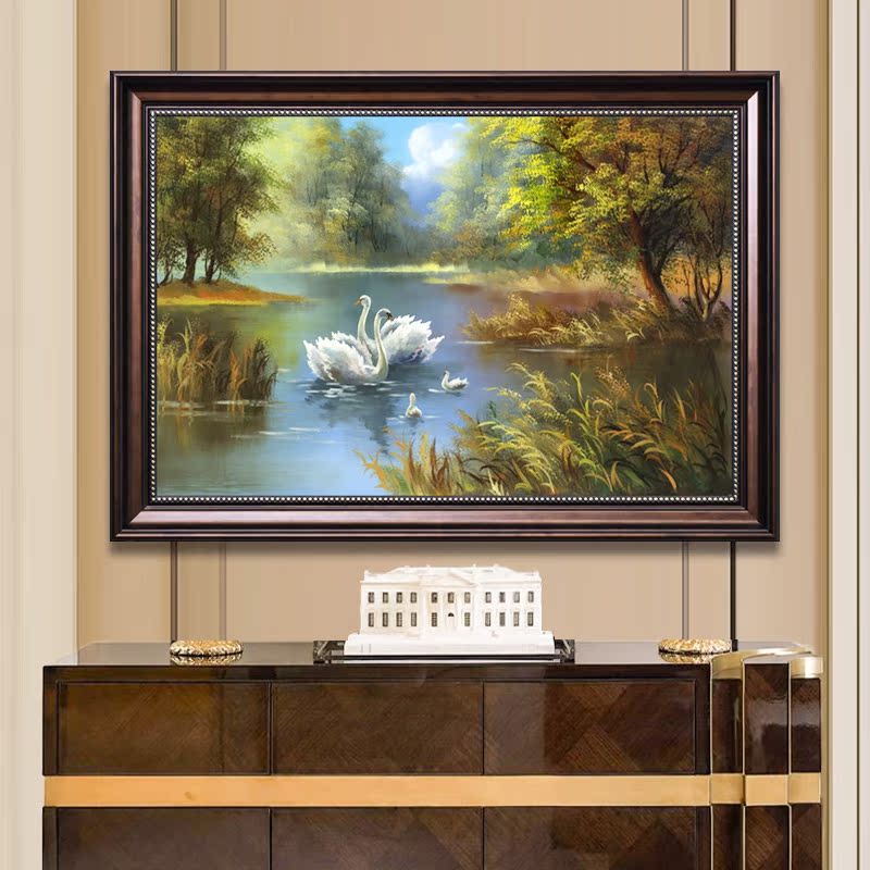 5d鉆石畫歐式風景客廳玄關臥室掛畫天鵝湖粘鉆十字繡餐廳磚石畫1入